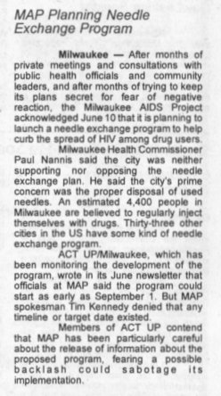 MAP planning needle exchange program