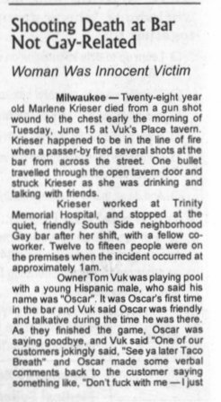 Marlene Kreiser dies in Vuk's Place tavern accidental shooting