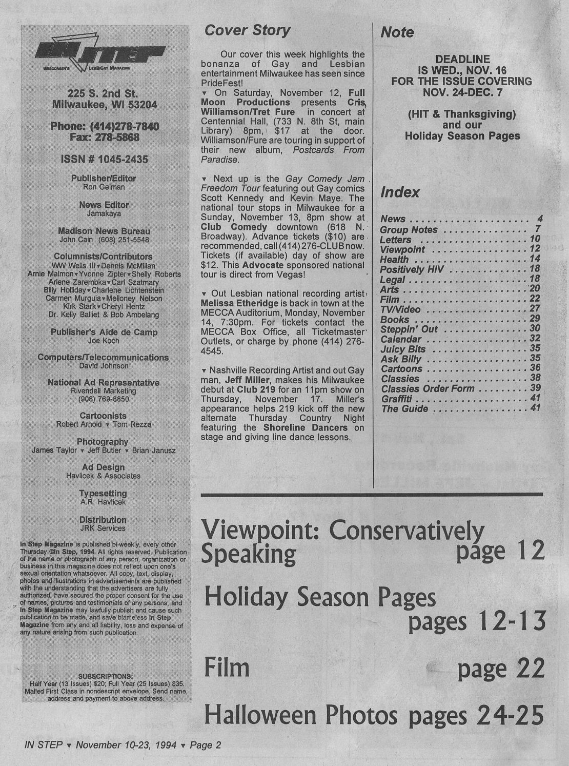 Volume 11, Number 22 -- November 10-23, 1994