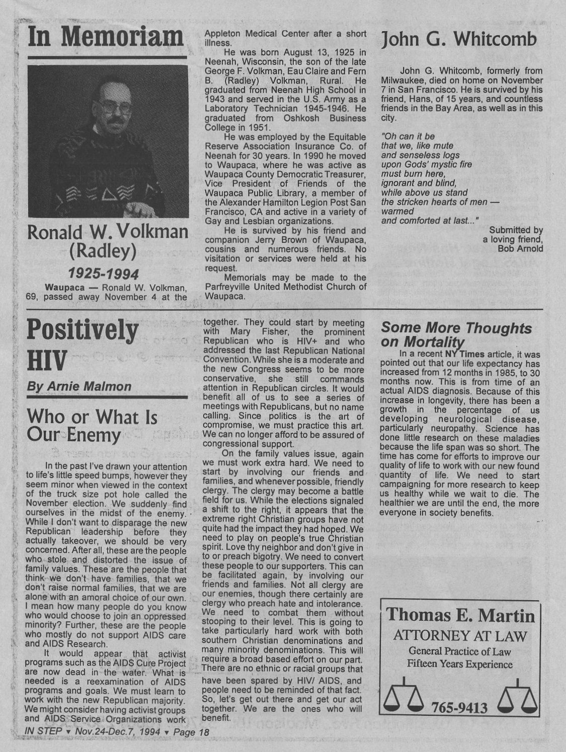 Volume 11, Number 23 -- November 24- December 7, 1994