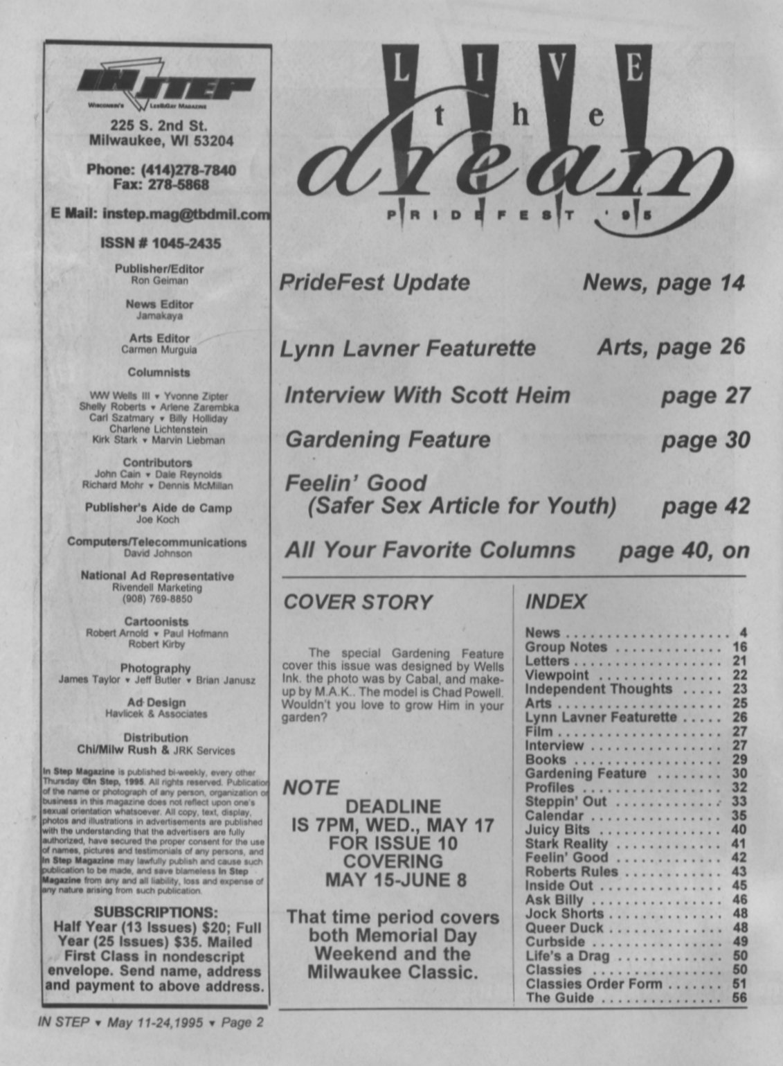 Credits: All cover images and text from In Step copyrighted; Thanks to William Attewell for permissions to reproduce select items. Page tagging assistance by Jamie Taylor. Page design and format by Don Schwamb. Last updated: September-2009.