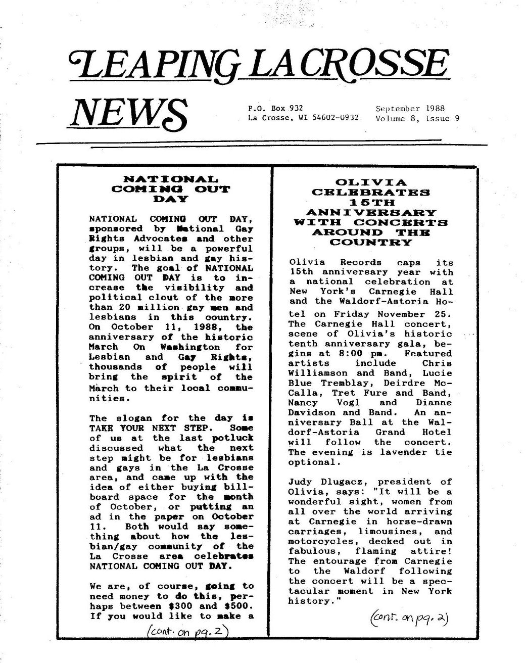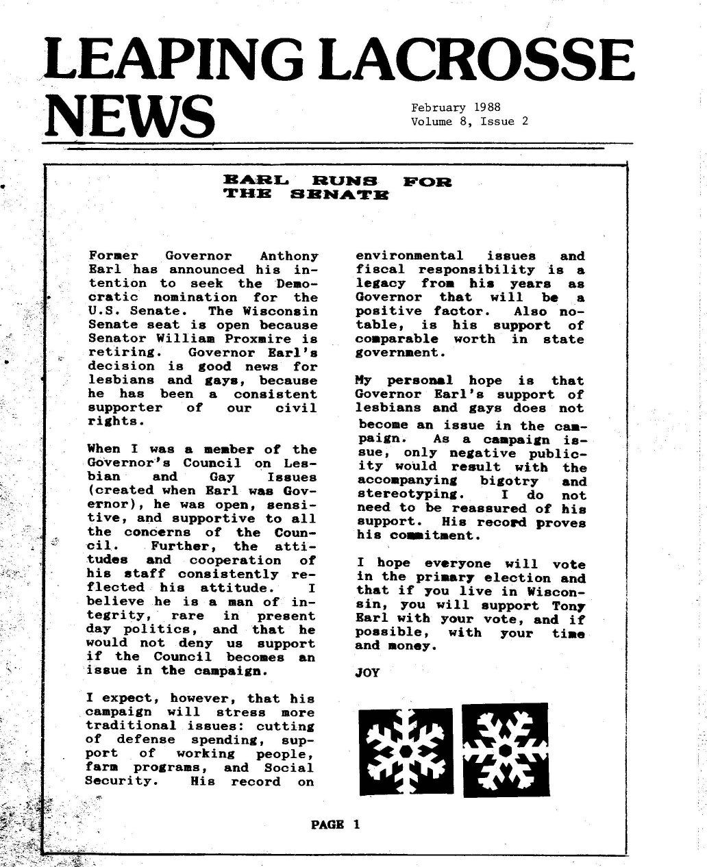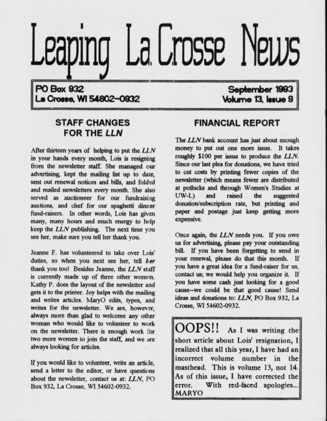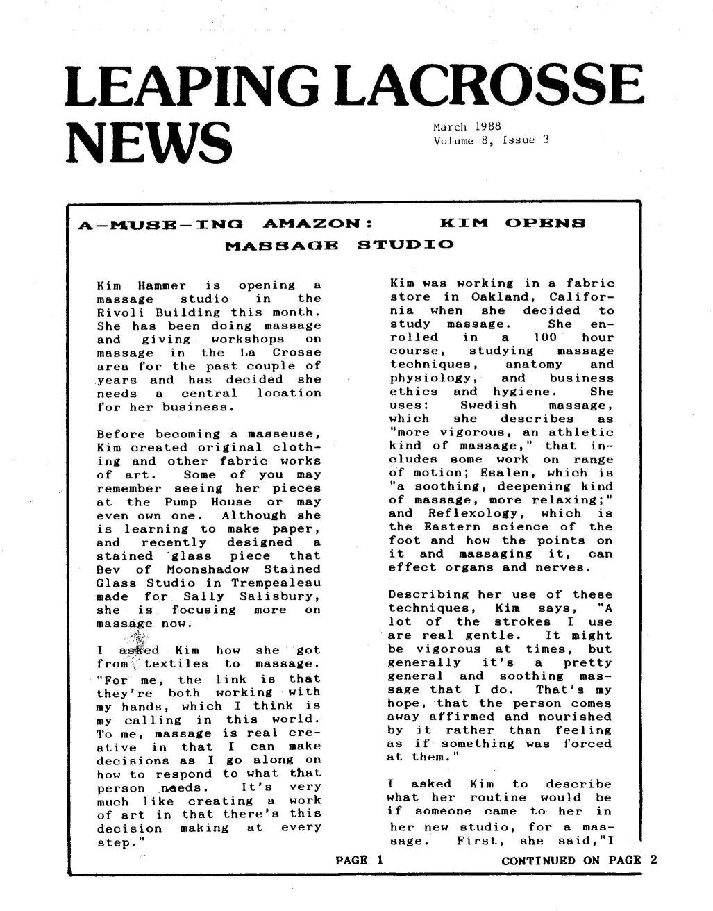Credits: All cover images and text from Leaping LaCrosse News copyrighted;