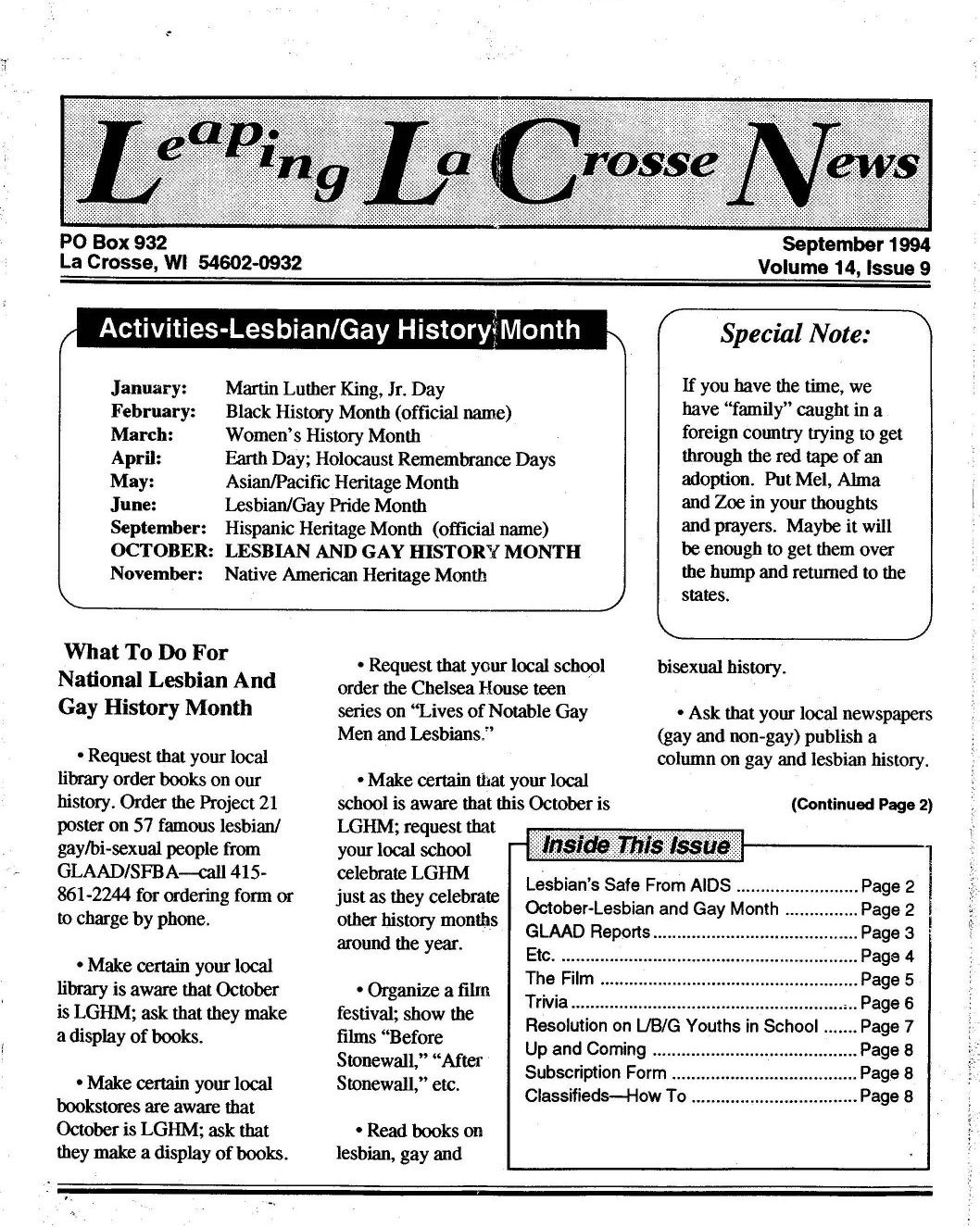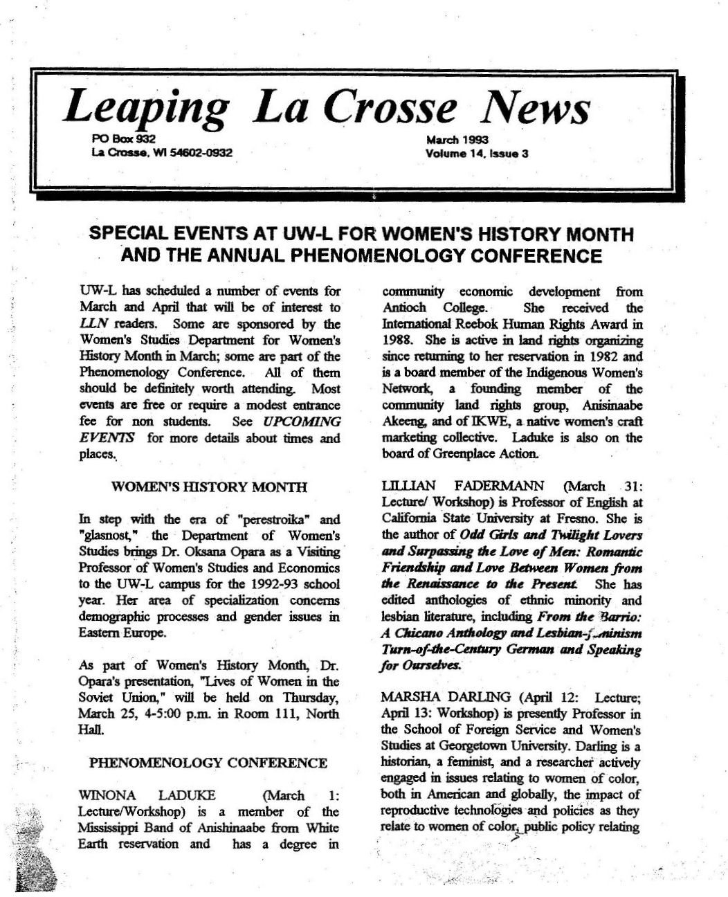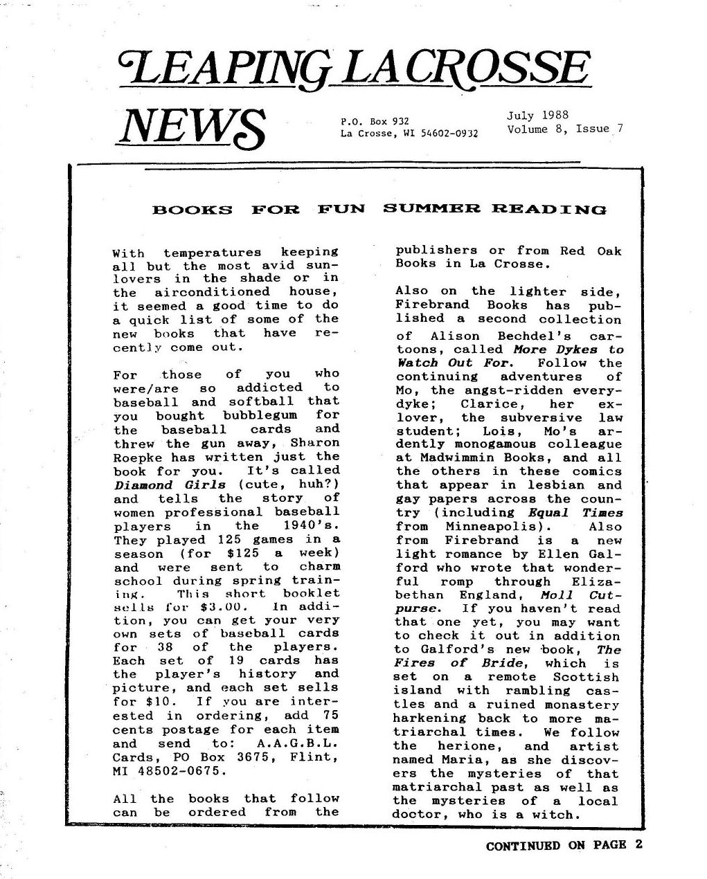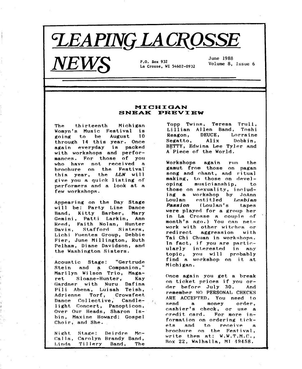 Credits: All cover images and text from Leaping LaCrosse News copyrighted;