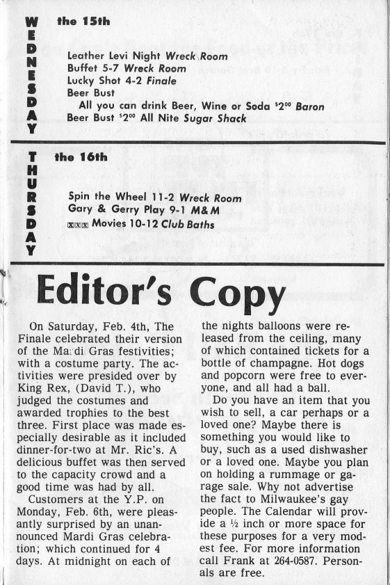 Advertisement for Club Milwaukee Baths