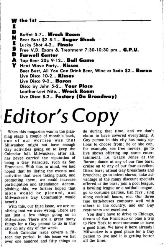 Editor's Copy: Initial concern was whether there would be enough going on in Milwaukee to fill the publication every 2 weeks: editor finds that things to do in Milwaukee are plentiful!