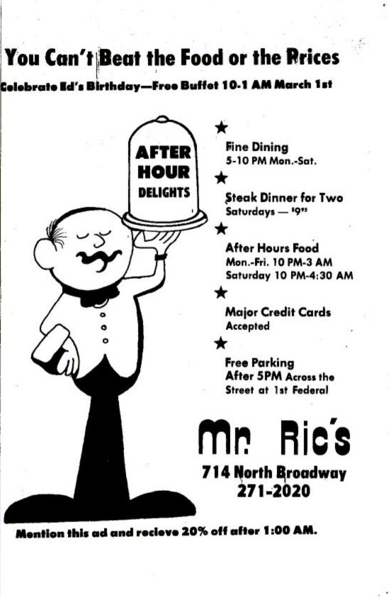 Ad for Mr. Ric's Restaurant