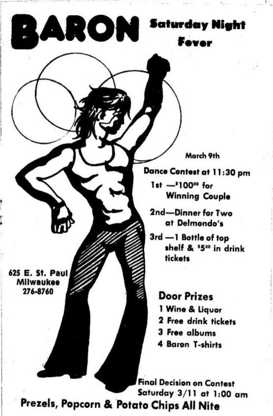 Advertisement for Saturday Night Fever at the Baron