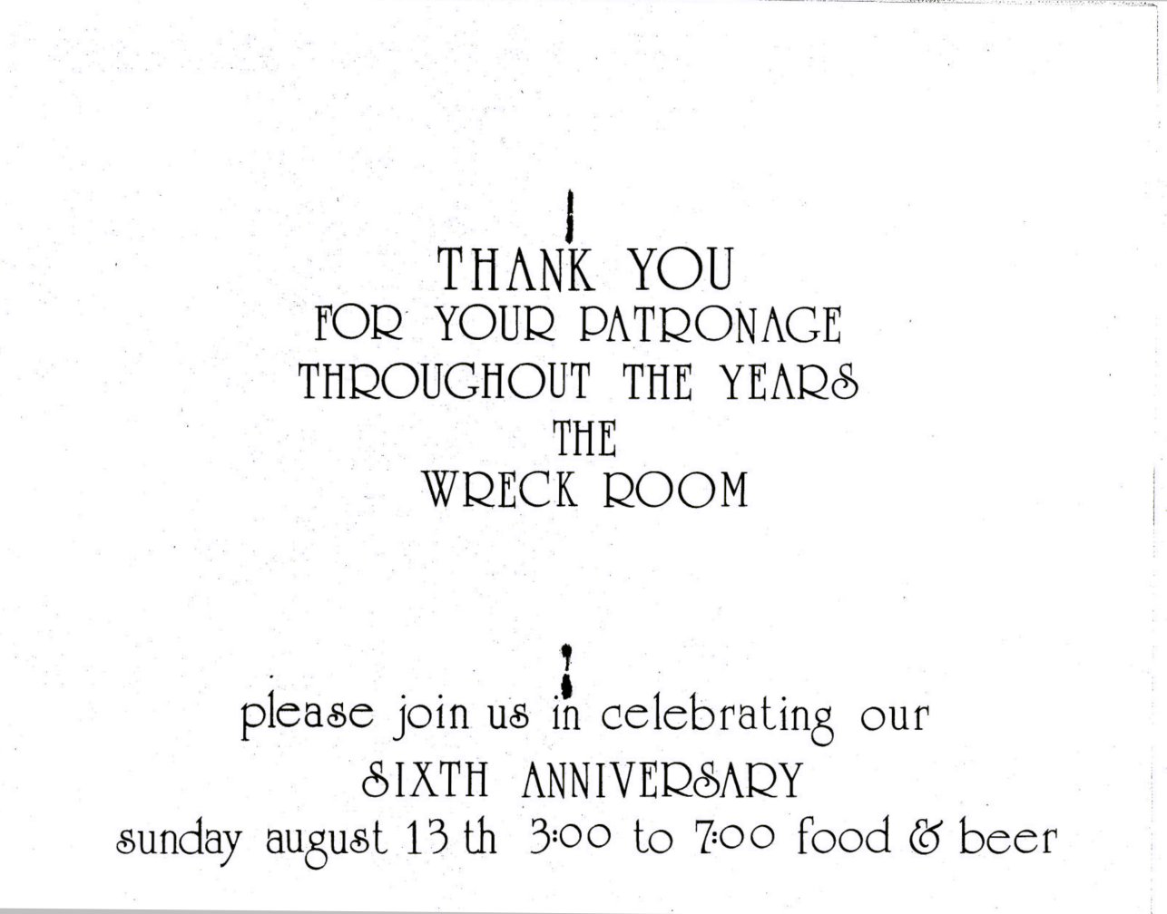 Wreck Room 6th Anniversary ad