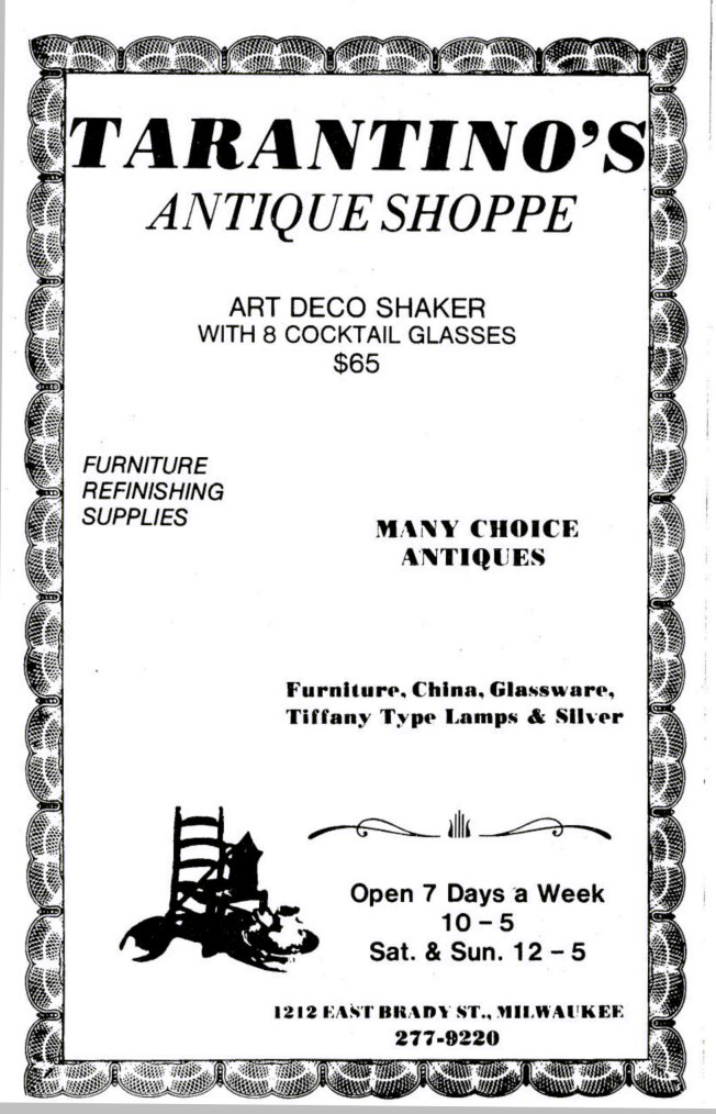 Advertisement for Tarantino's Antiques