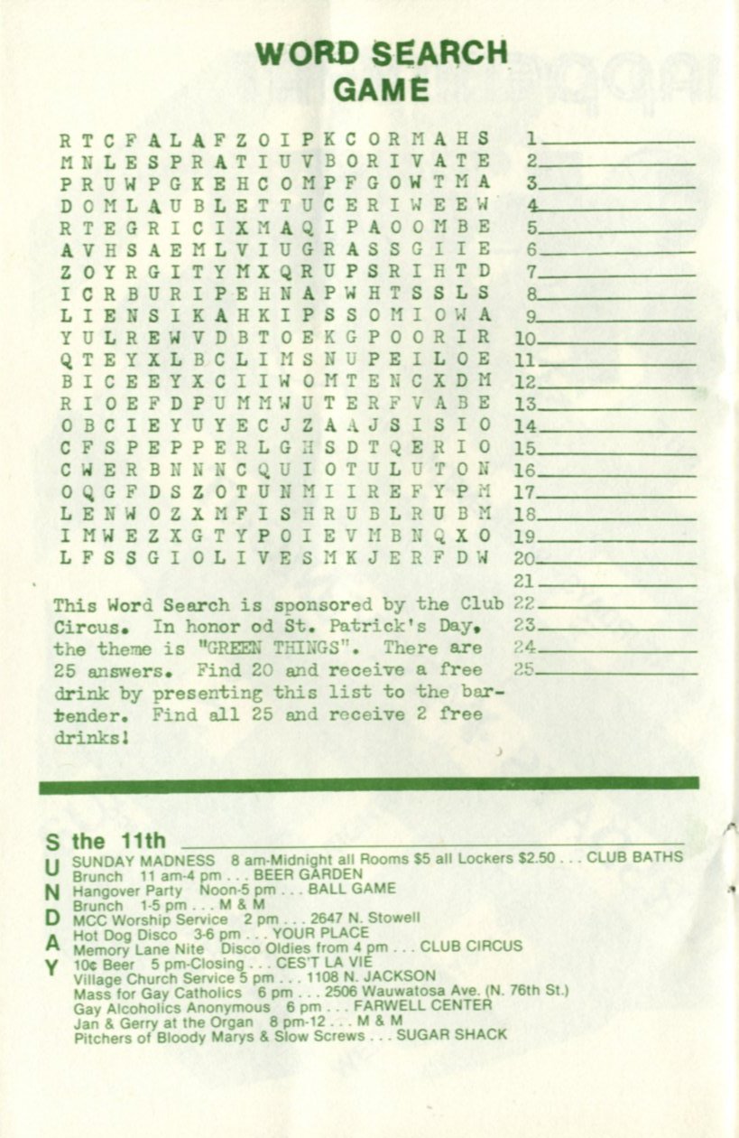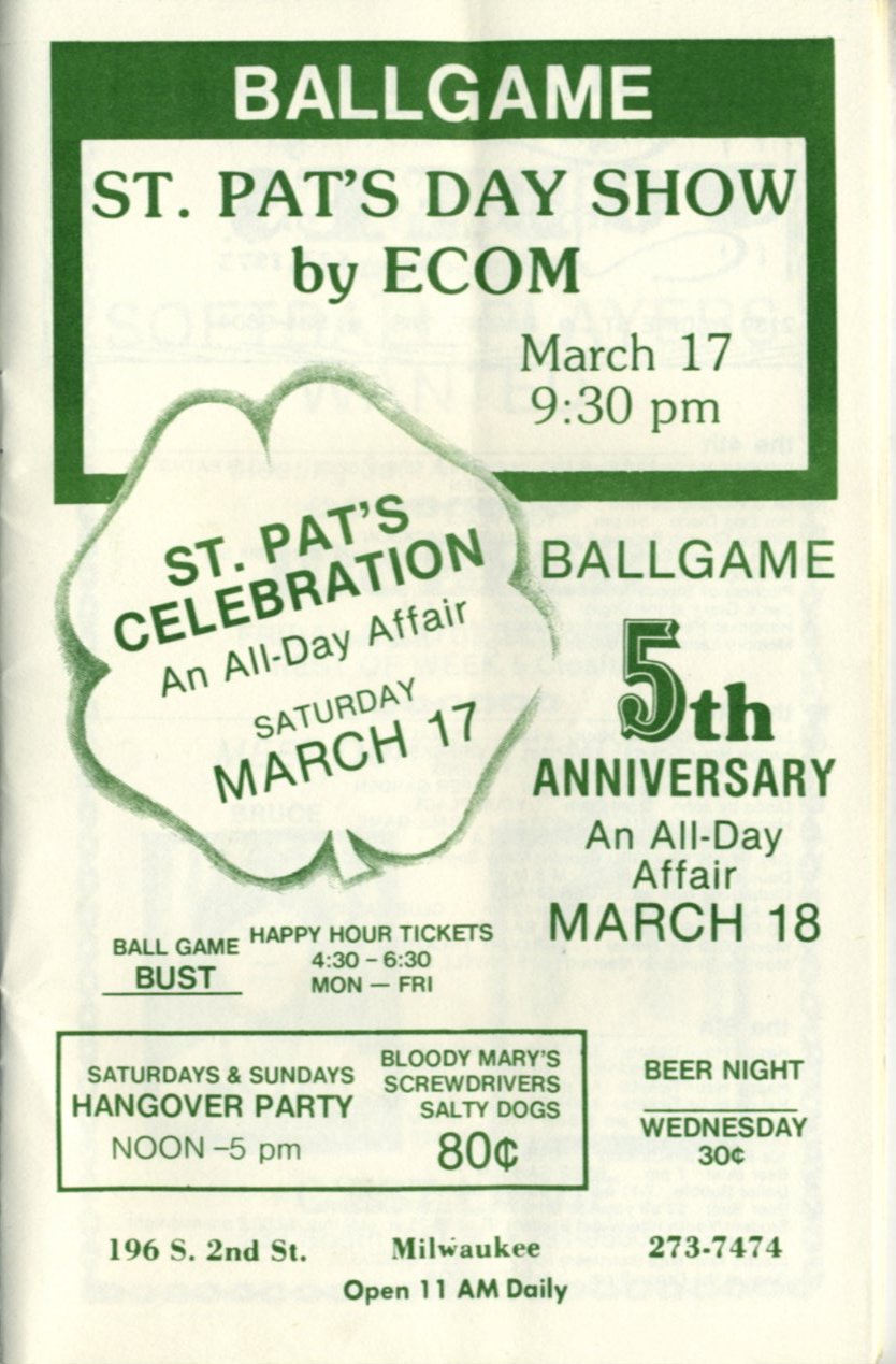 Ad: Ballgame 5th anniversary and St. Pat's Day show by ECOM (Entertainers of Milwaukee)