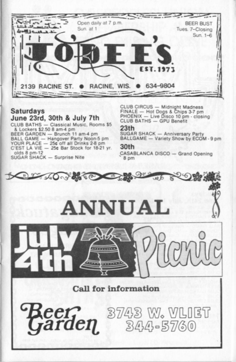 Ad: Jodee's (Racine) & Beer Garden's 4th of July Picnic
