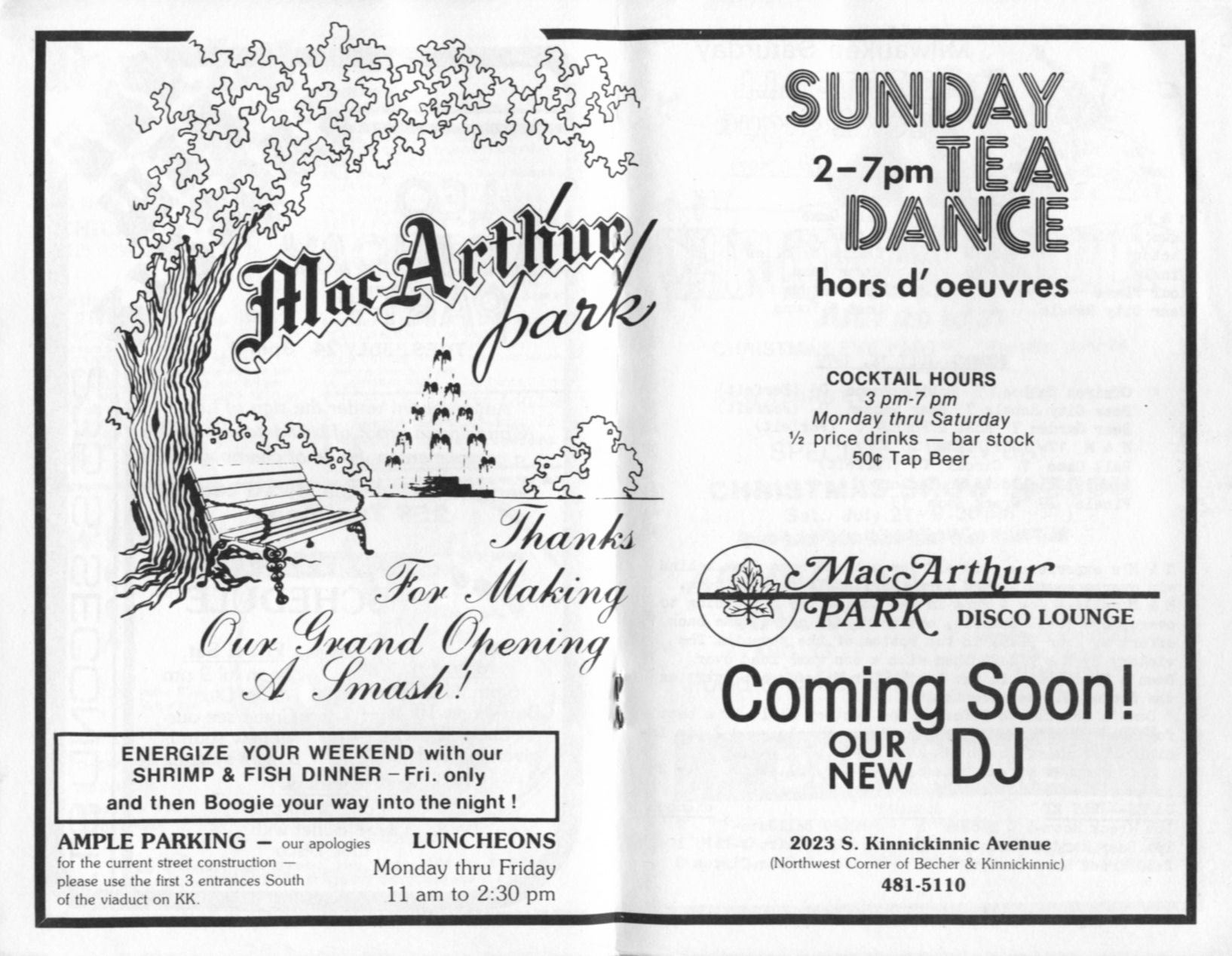 Ad: MacArthur Park Disco opening & Sunday Tea Dance