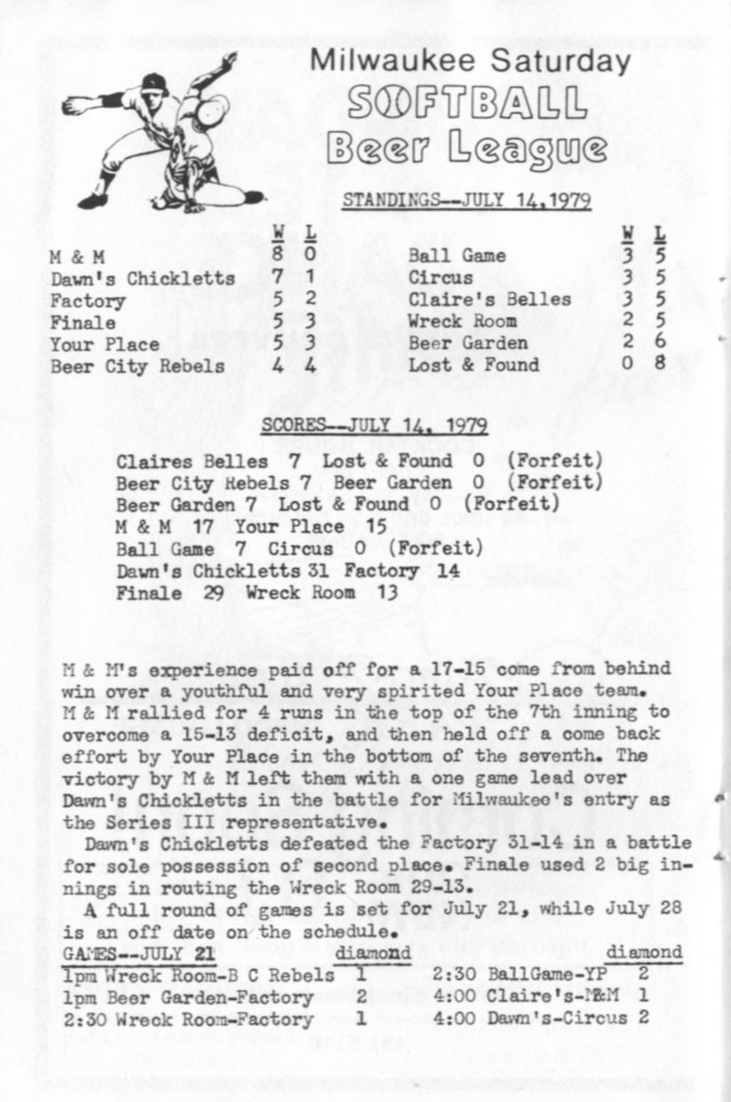Softball Beer League standings