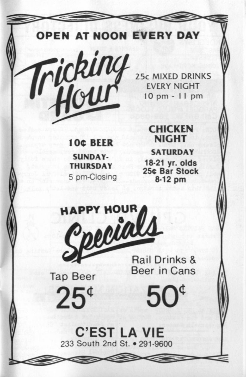 Ad: Cest La Vie bar "Tricking Hour"