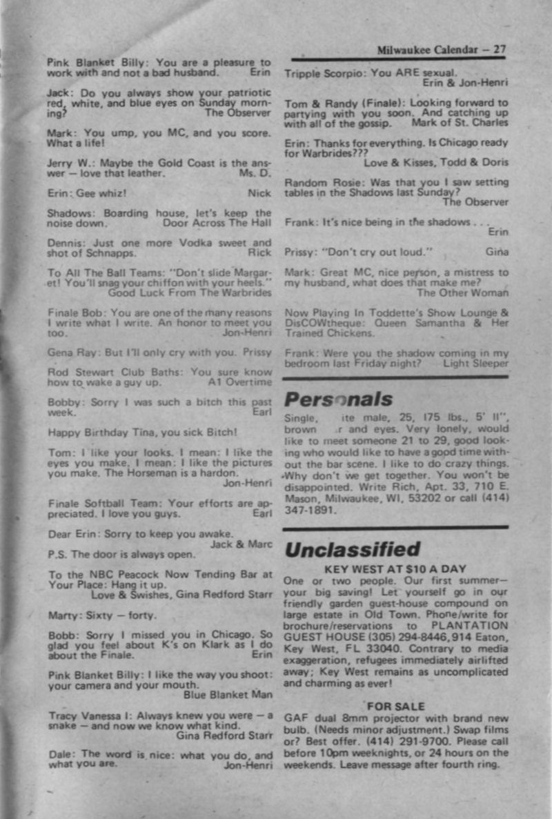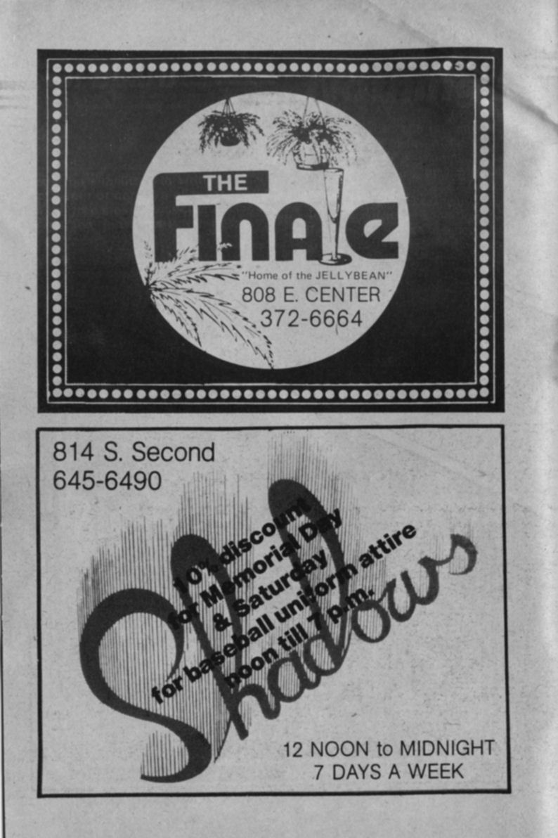 Ads: The Finale bar + Shadows bar + restaurant "10% discount for baseball uniform attire"