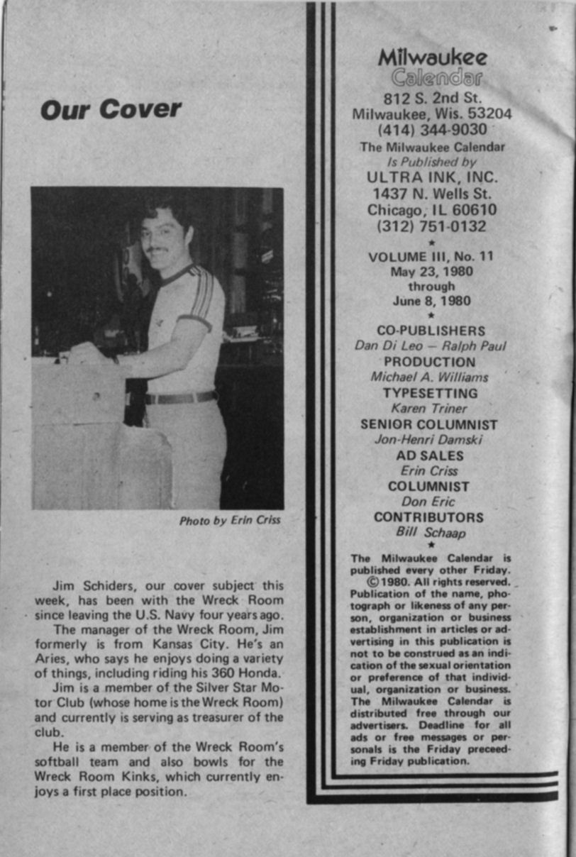 On the Cover: Jim Schiders, manager of the Wreck Room bar (click here to view photo)