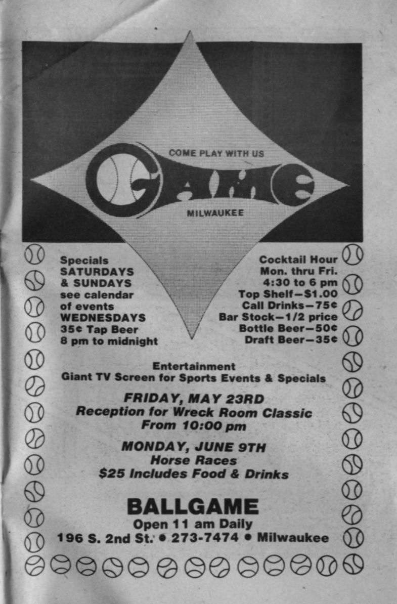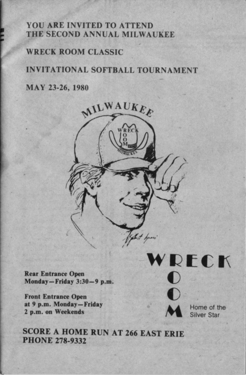 Ad: invitation to Second Annual Wreck Room Classic Invitational Softball Tournament (logo by Robert Uyvari)
