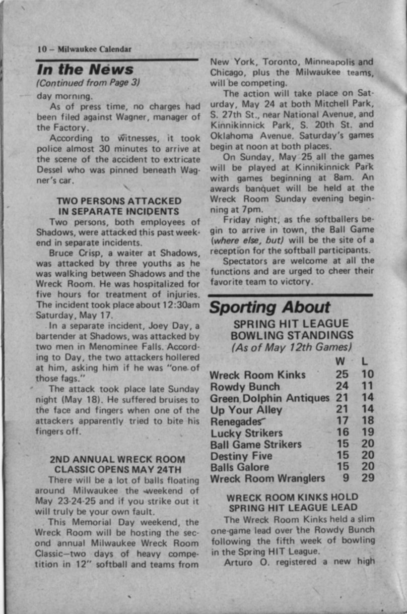News, cont.: Two employees of Shadows attacked in separate incidents + 2nd annual Wreck Room Classic about to begin