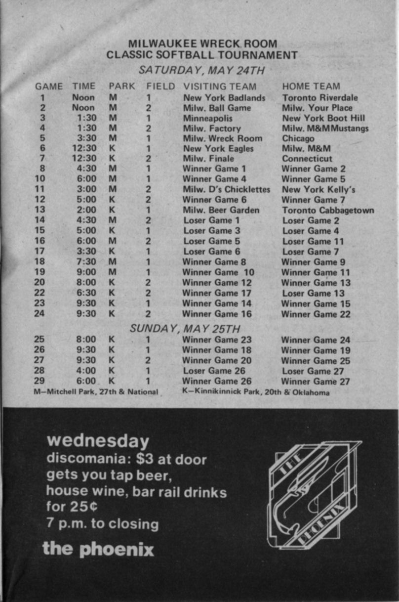 Game/ team times for Milwaukee Wreck Room Classic Softball Tournament