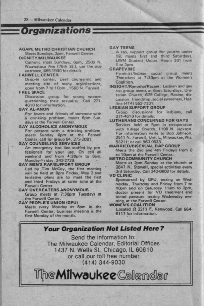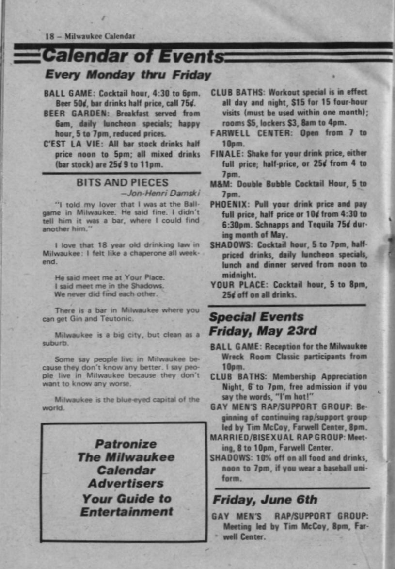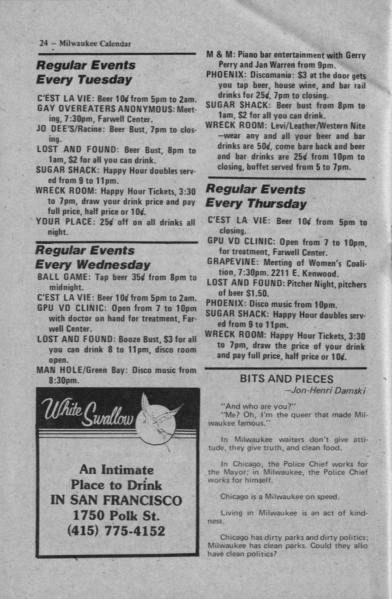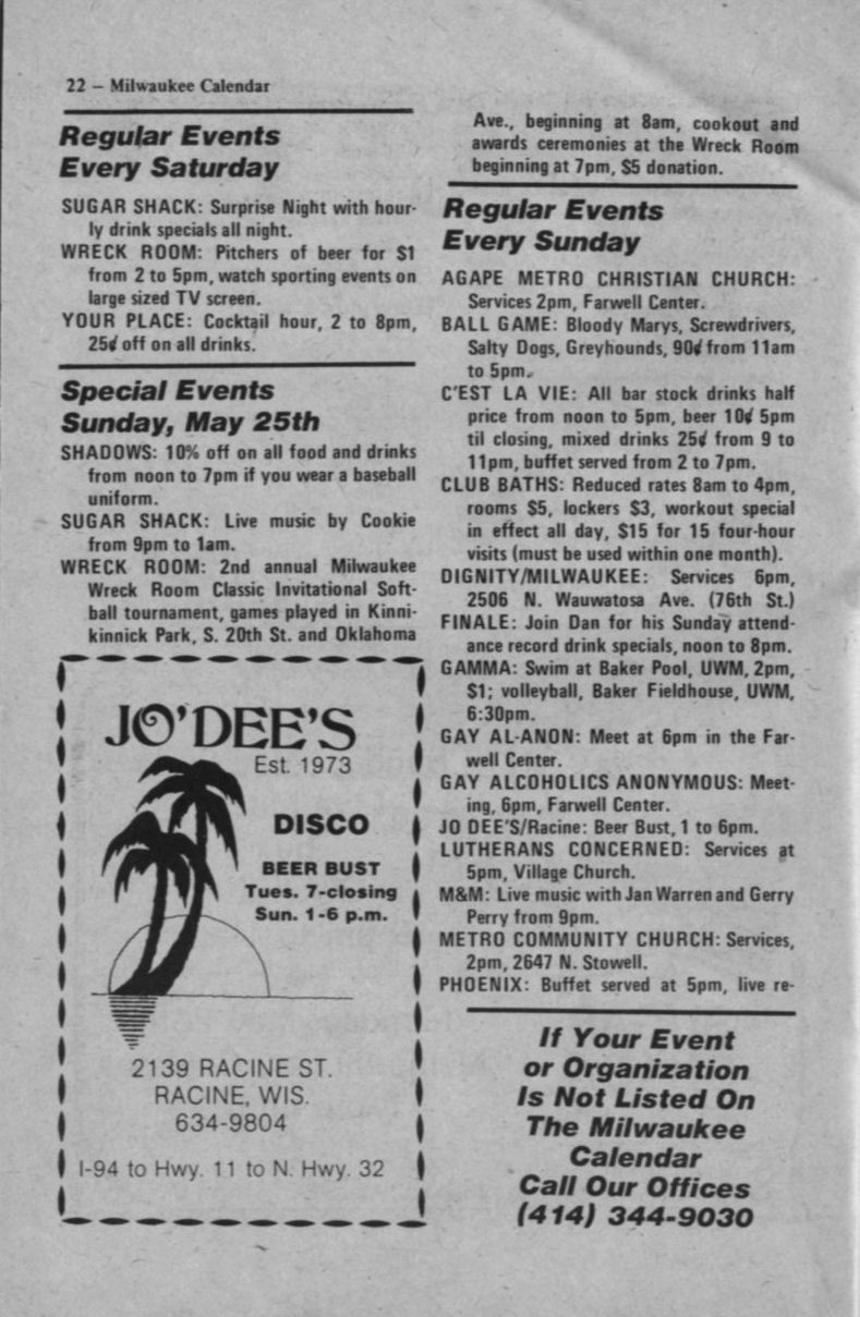 Calendar of Events, cont. + Ad: Jo'Dee's, Racine