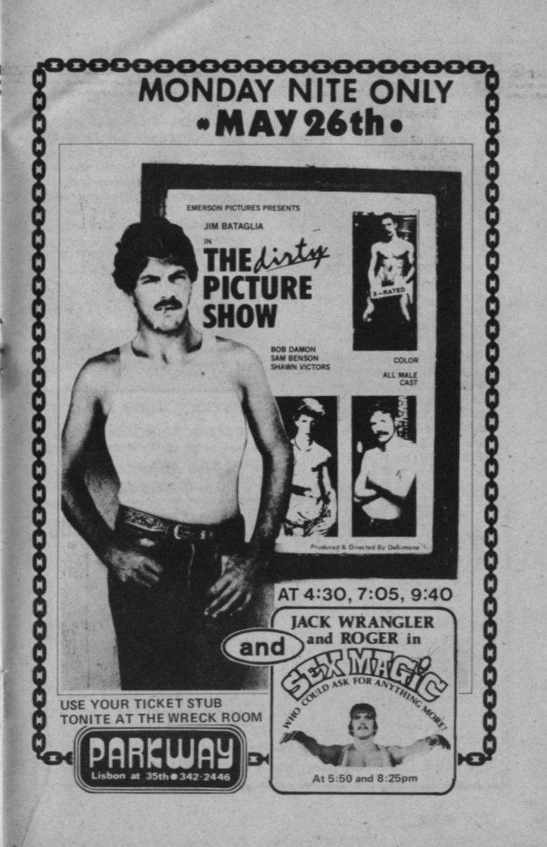 Ad: The Lib Bookstore: Mag sale, and movies: "The latest 8mm loops"