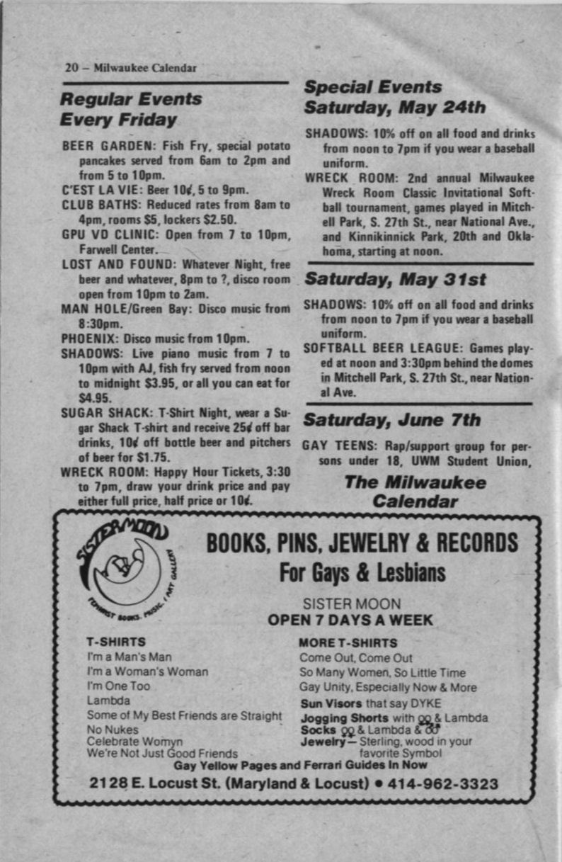Calendar of Events, cont. + Ad: Sister Moon Feminist Books