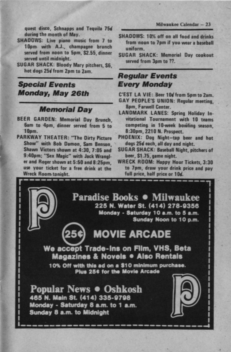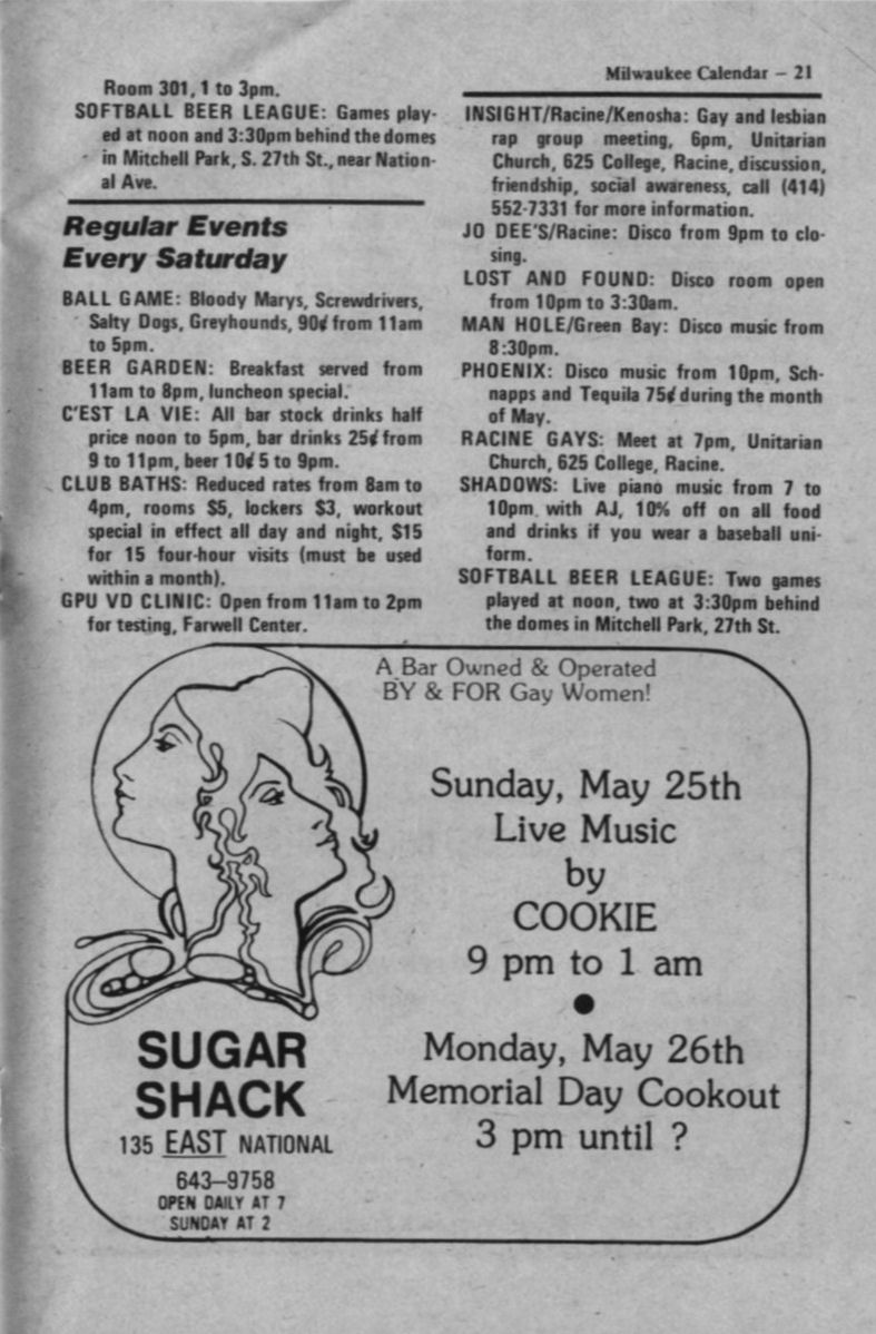 Calendar of Events, cont. + Ad: Sugar Shack bar