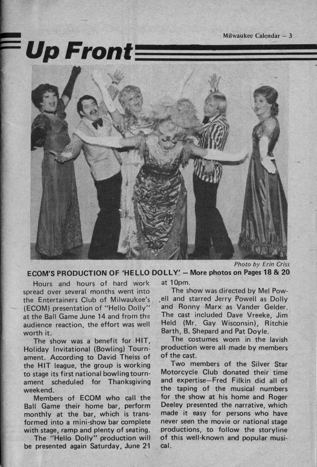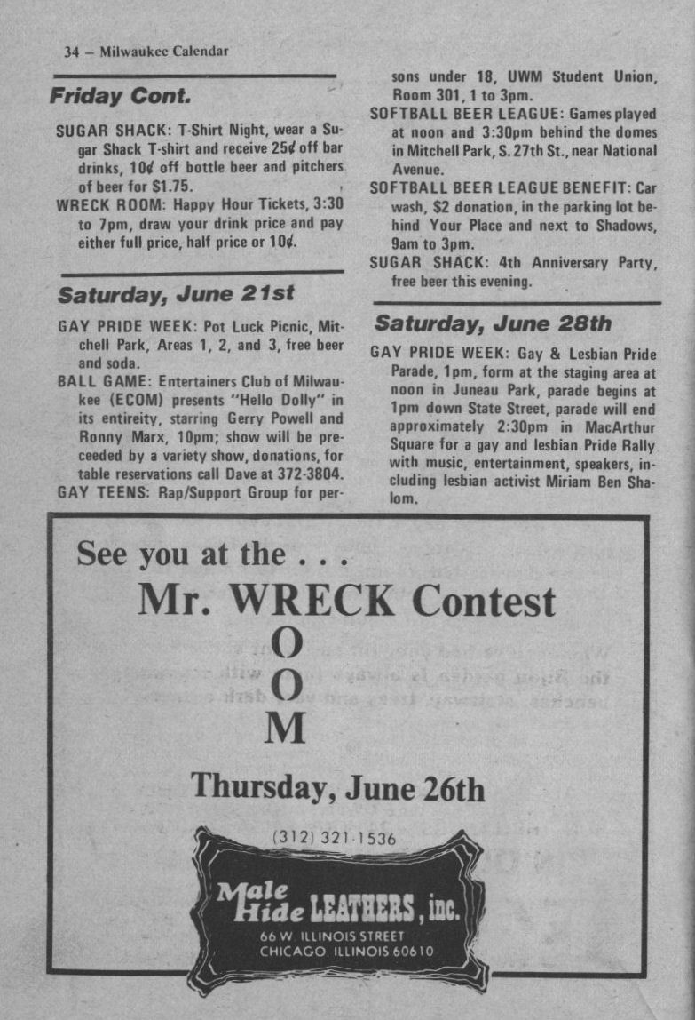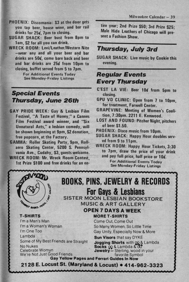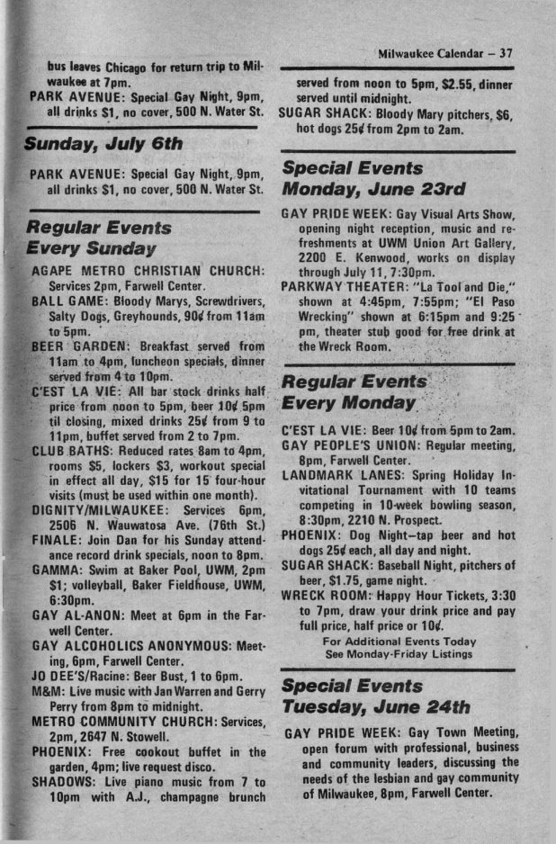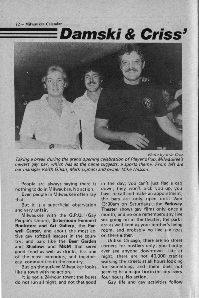 in compiling Milwaukee Calendar/ Gay Milwaukee historical materials.