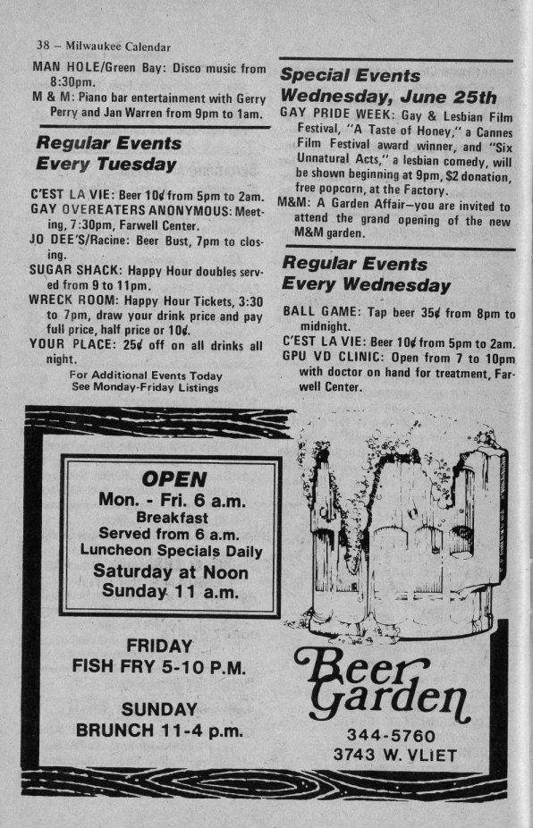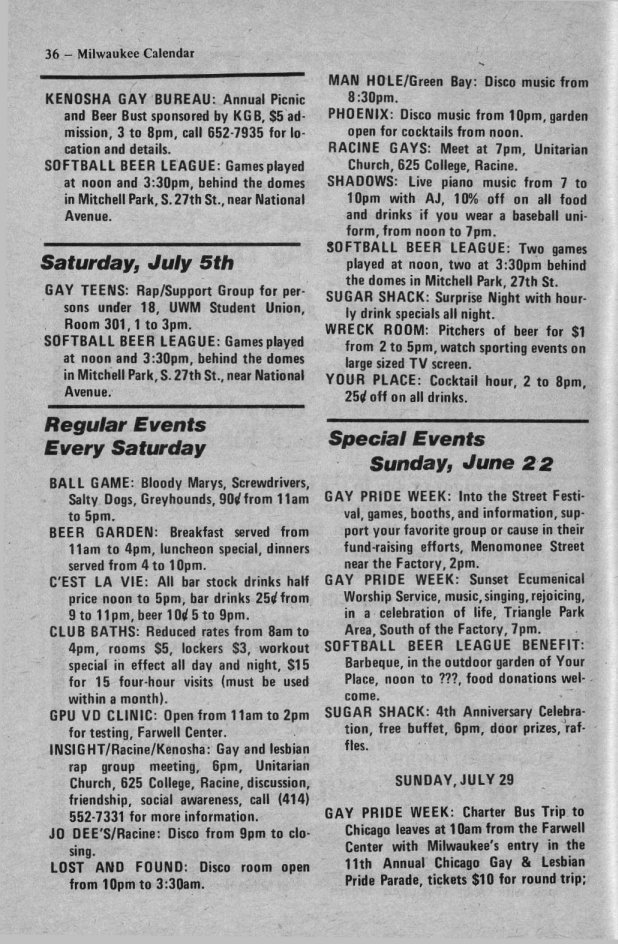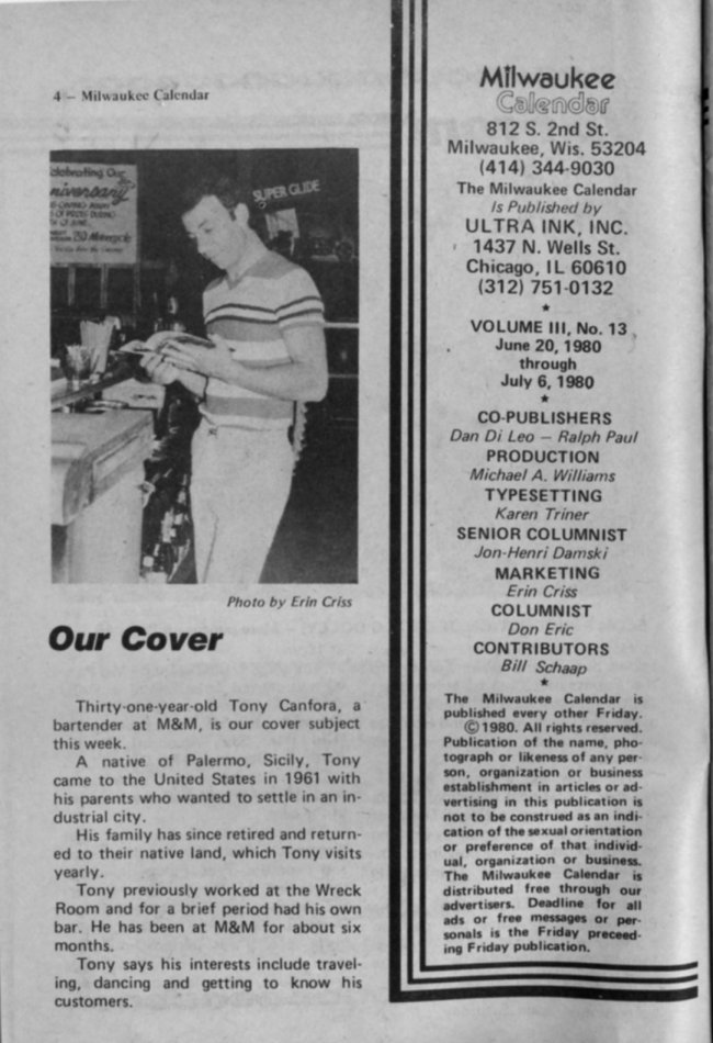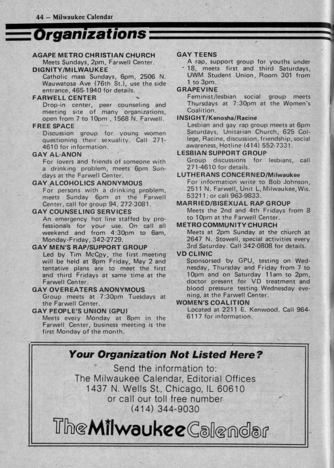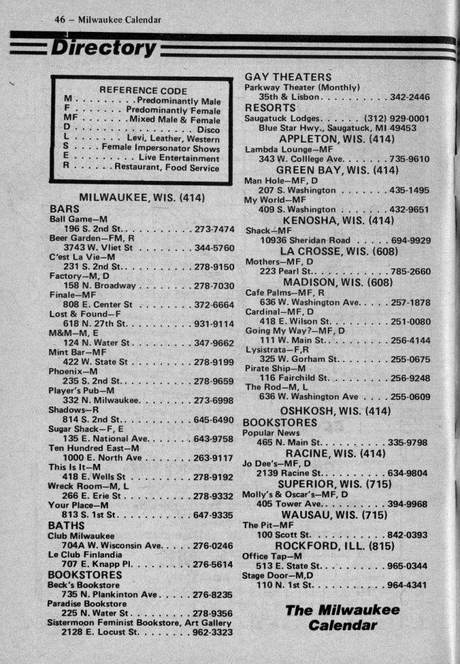 History of Gay and Lesbian Life in Milwaukee, Wisconsin - Print Media - Milwaukee Calendar Magazine