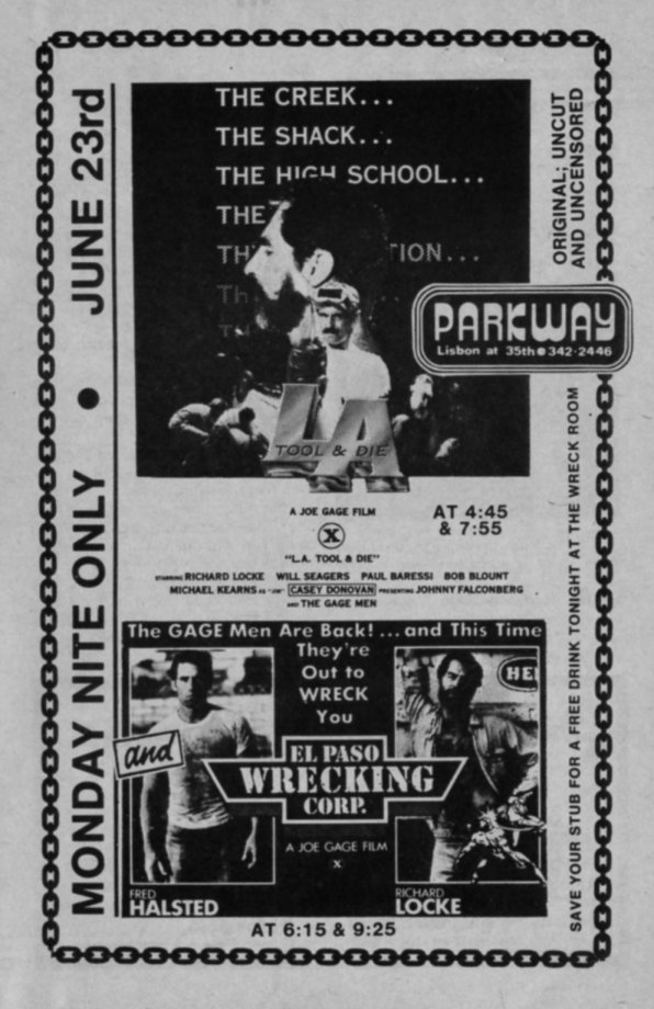 Advertisement for Parkway Theatre (adult films)