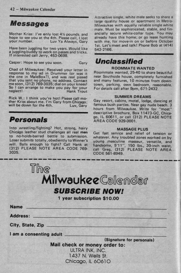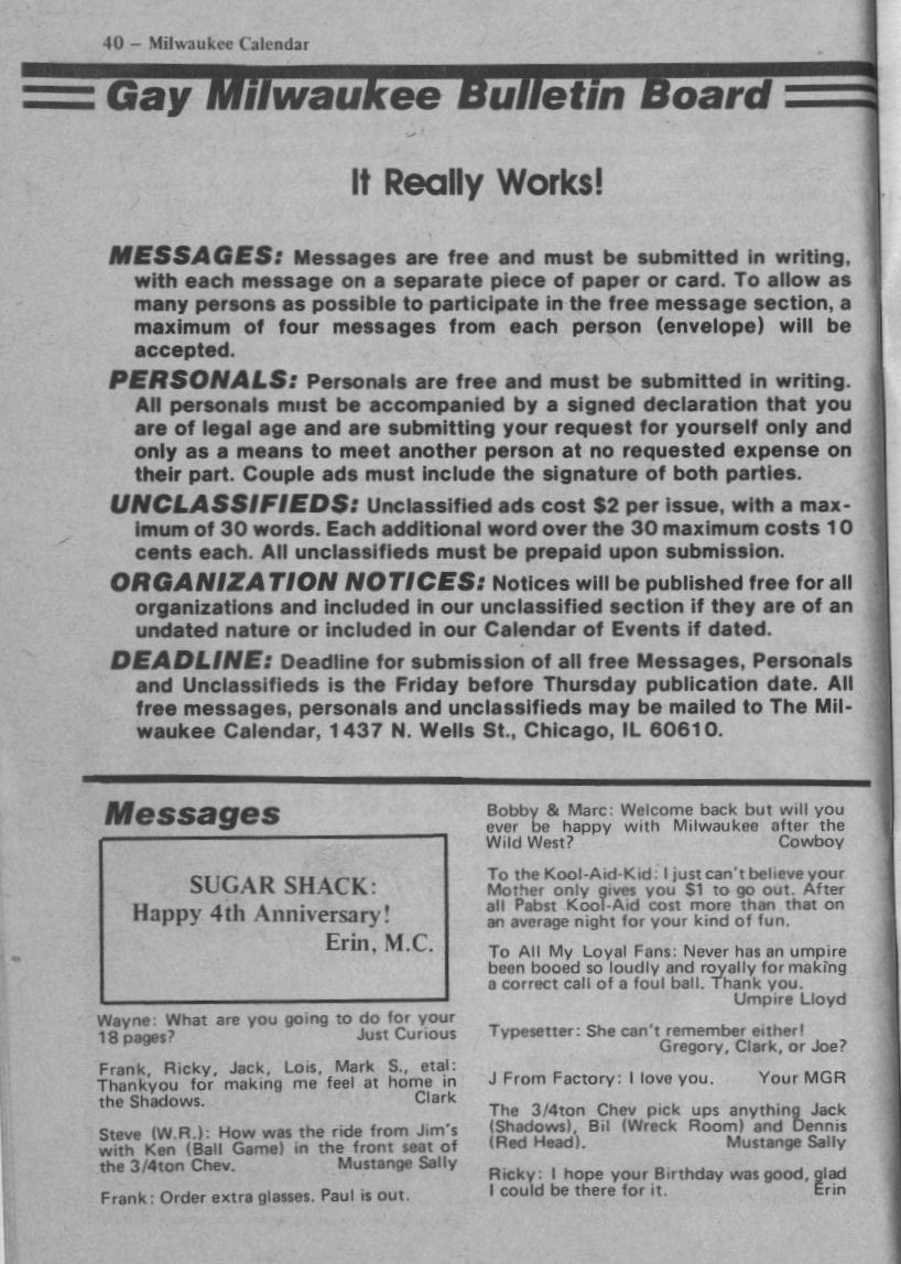 Gay Milwaukee Bulletin Board (pages 40+41)