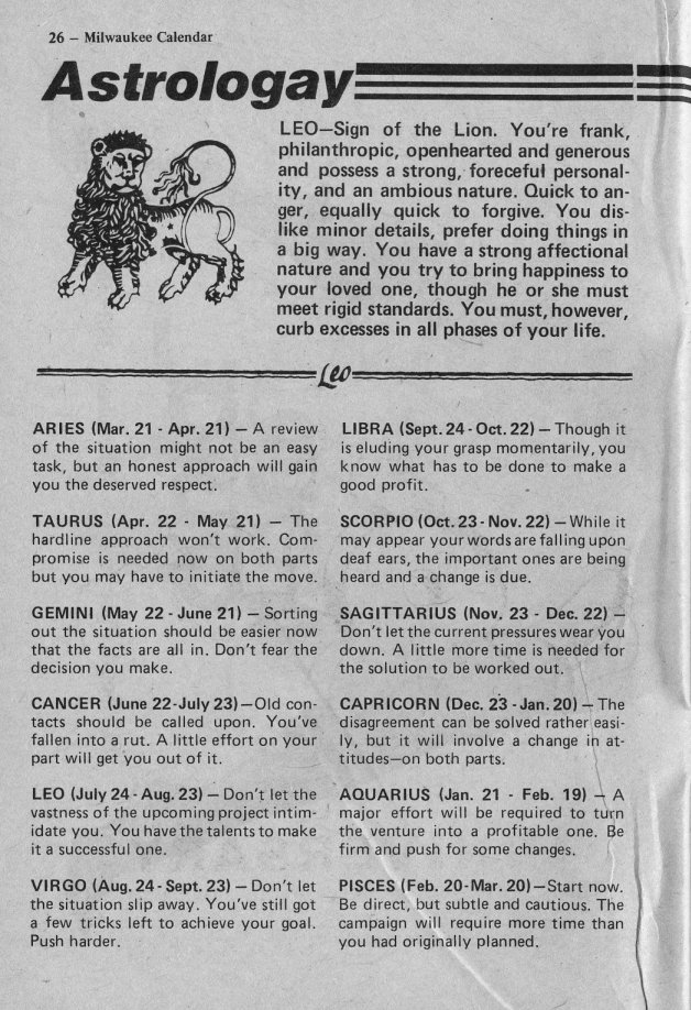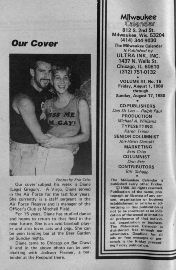 <--Excerpts from Previous issue Excerpts from Next issue--> Return to Milwaukee Calendar cover gallery. Credits: All cover images and text from Milwaukee Calendar | ||||||||||||||||||||||||||||||||||||||||||||||||||||