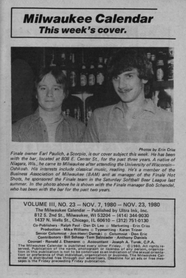 <--Excerpts from Previous issue Excerpts from Next issue--> Return to Milwaukee Calendar cover gallery. Credits: All cover images and text from Milwaukee Calendar | ||||||||||||||||||||