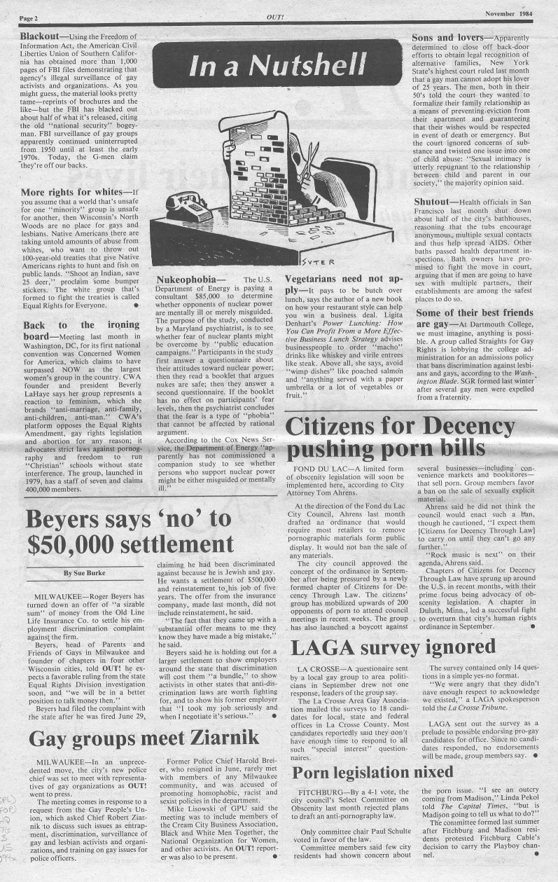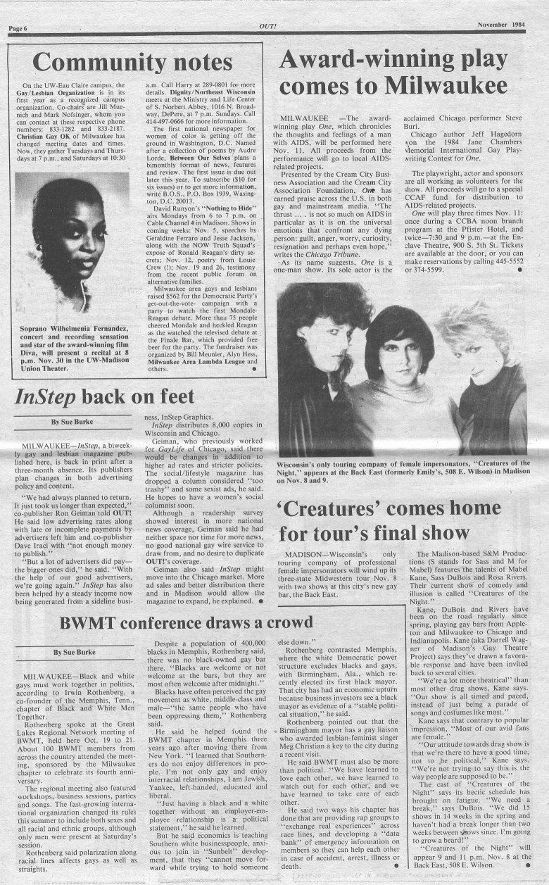 History of Gay and Lesbian Life in Milwaukee, Wisconsin - Print Media - OUT! newspaper