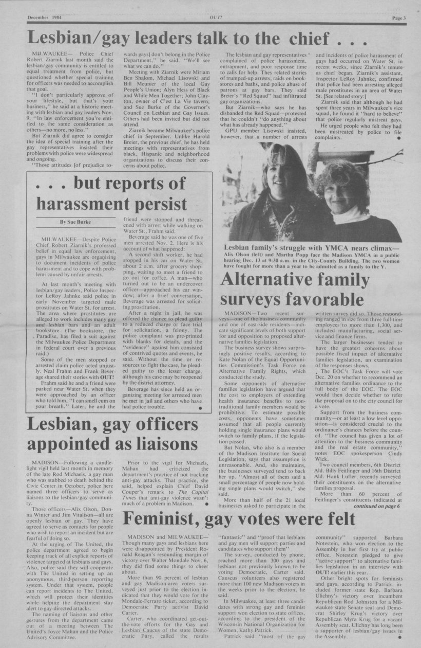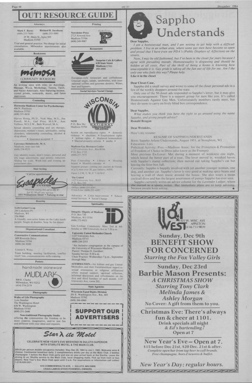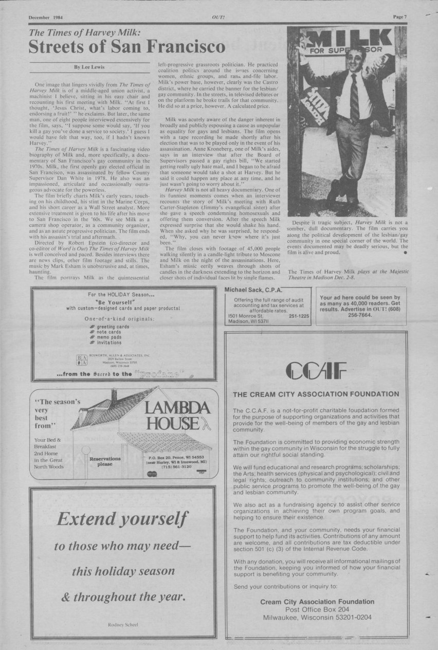 History of Gay and Lesbian Life in Milwaukee, Wisconsin - Print Media - OUT! newspaper