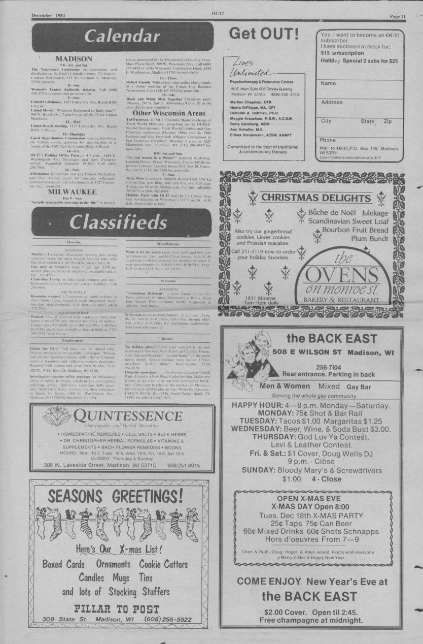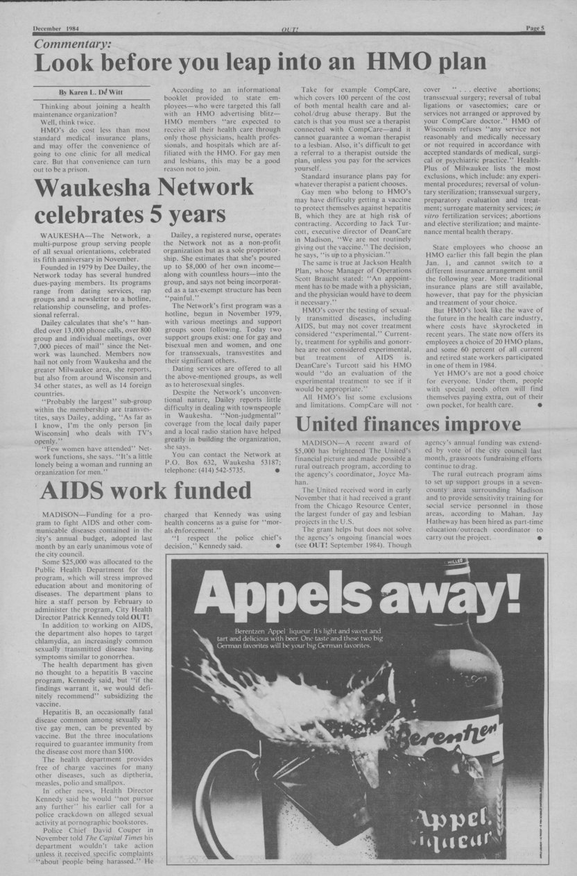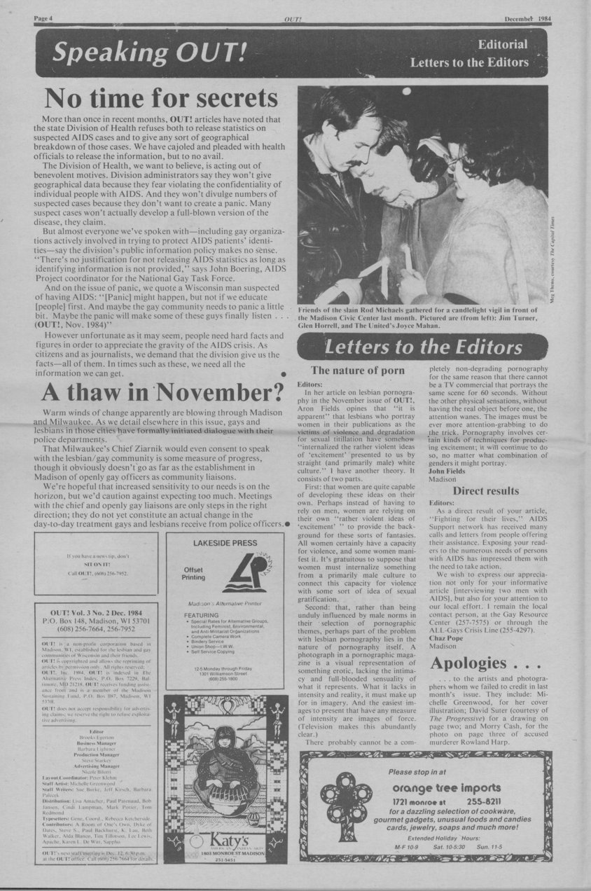 History of Gay and Lesbian Life in Milwaukee, Wisconsin - Print Media - OUT! newspaper
