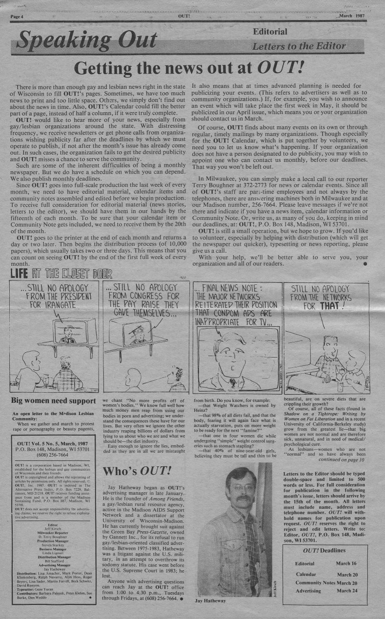 History of Gay and Lesbian Life in Milwaukee, Wisconsin - Print Media - OUT! newspaper
