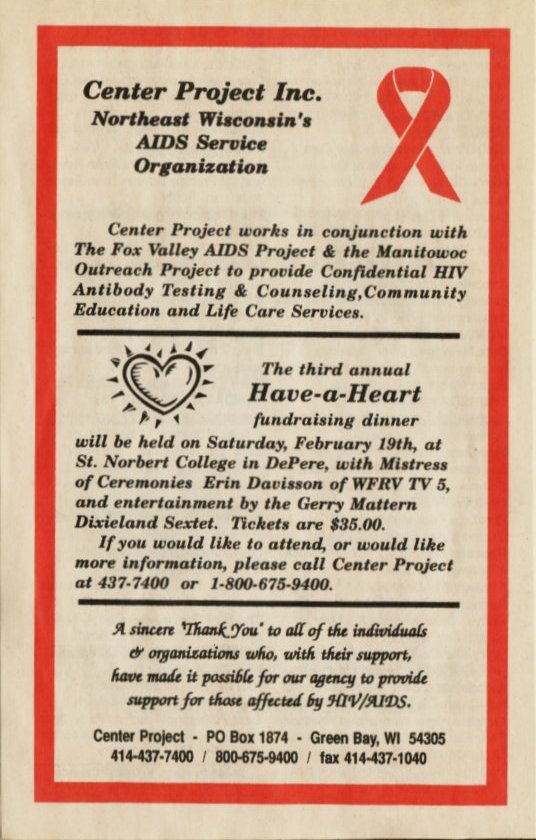 Advert for Center Project (northeast Wis. AIDS organization) (page 8)