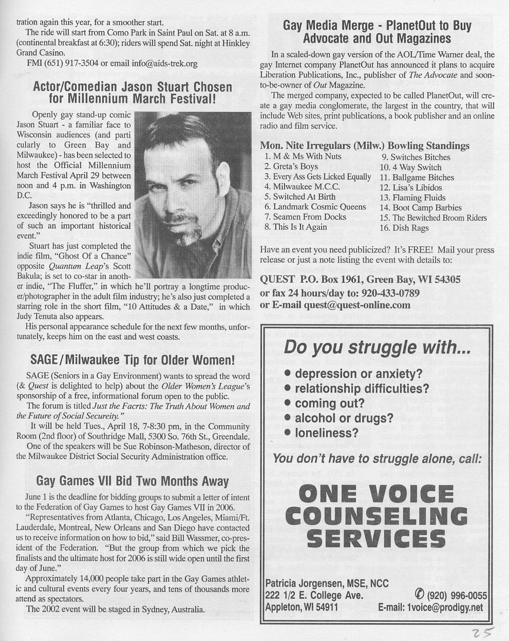 History of Gay and Lesbian Life in Milwaukee, Wisconsin - Print Media - Quest Magazine