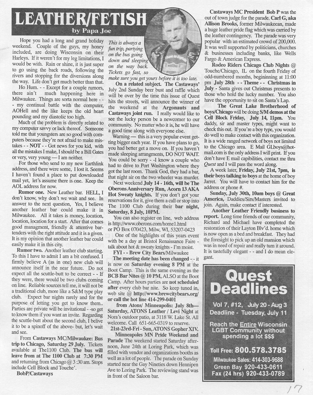 History of Gay and Lesbian Life in Milwaukee, Wisconsin - Print Media - Quest Magazine
