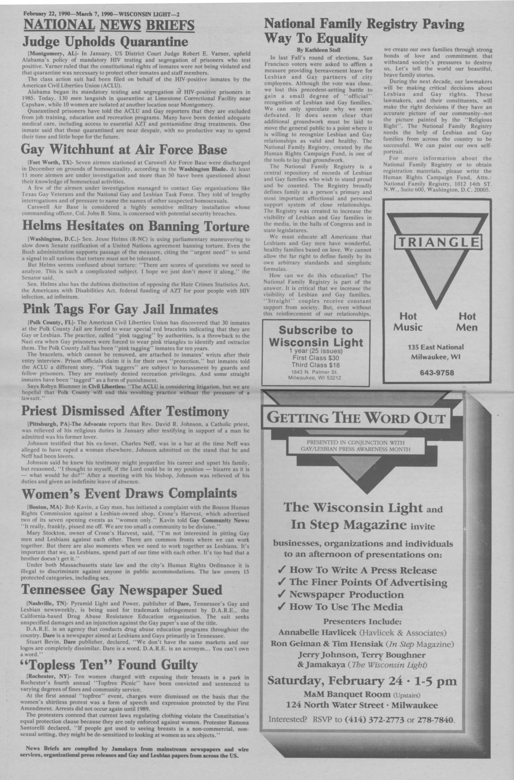 History of Gay and Lesbian Life in Milwaukee, Wisconsin - Print Media - The Wisconsin Light
