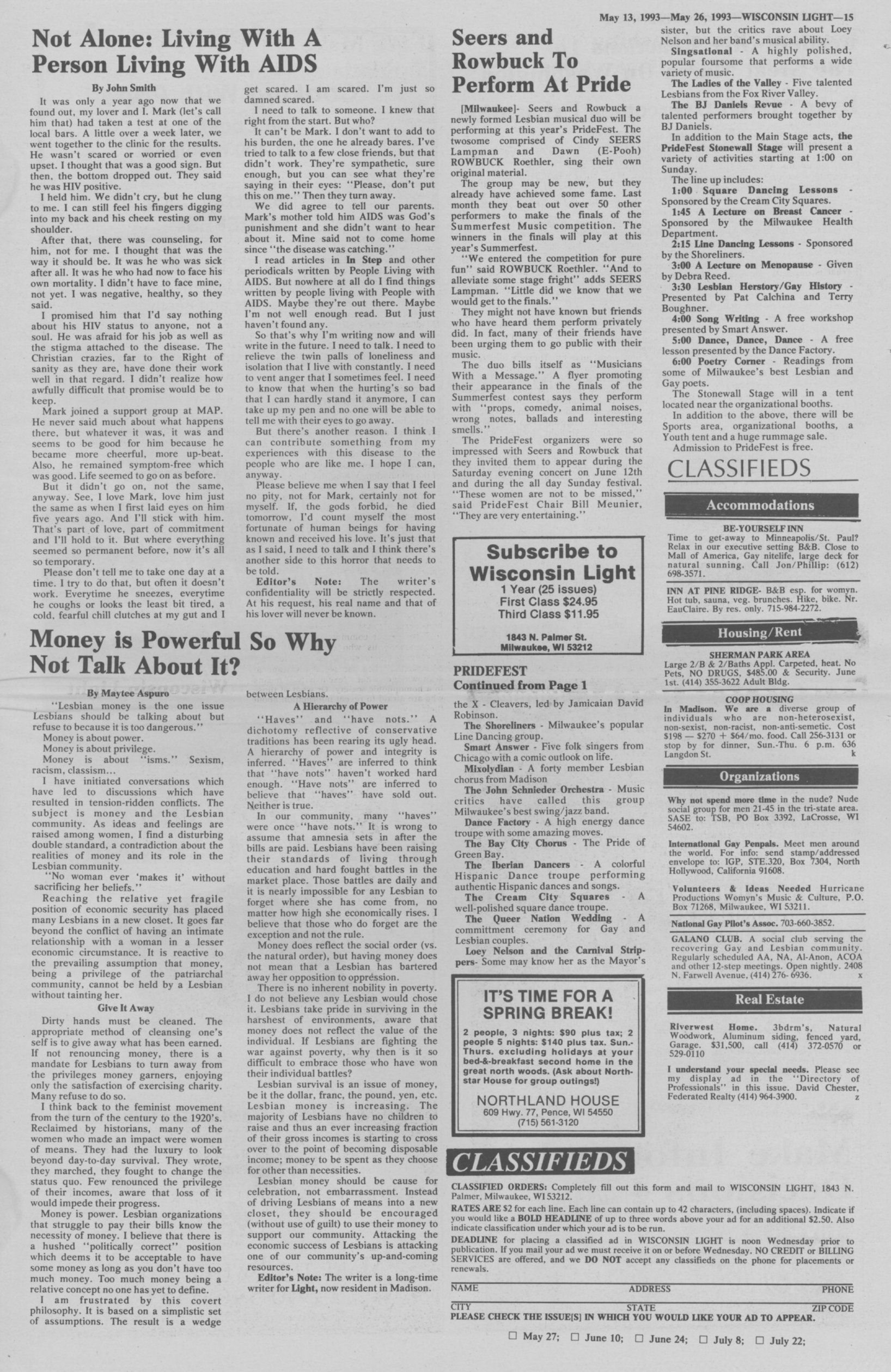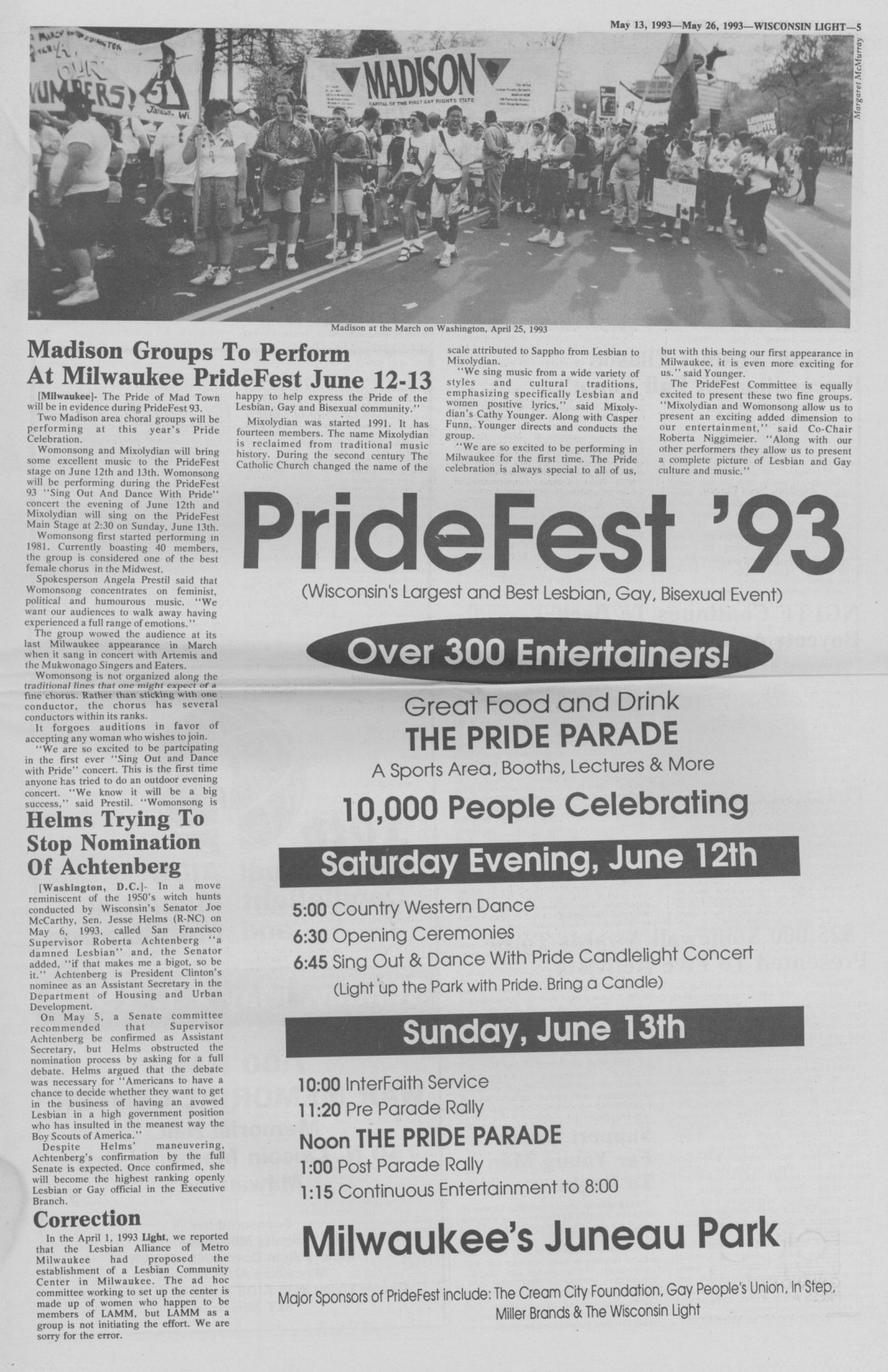 Ad: PrideFest 1993 at Juneau Park