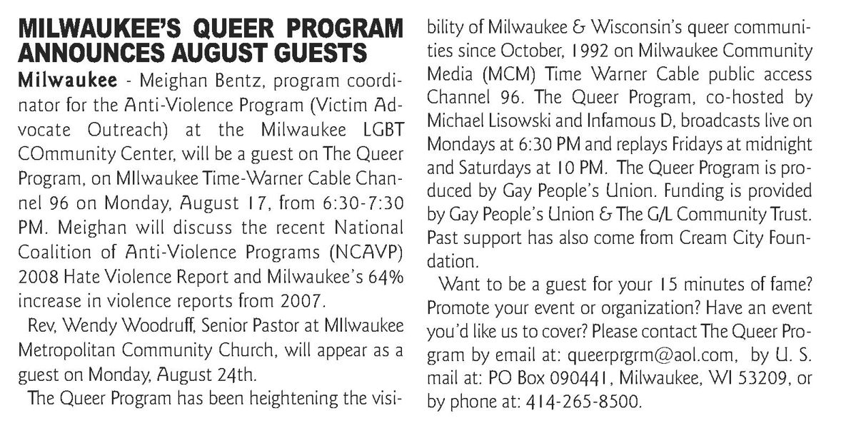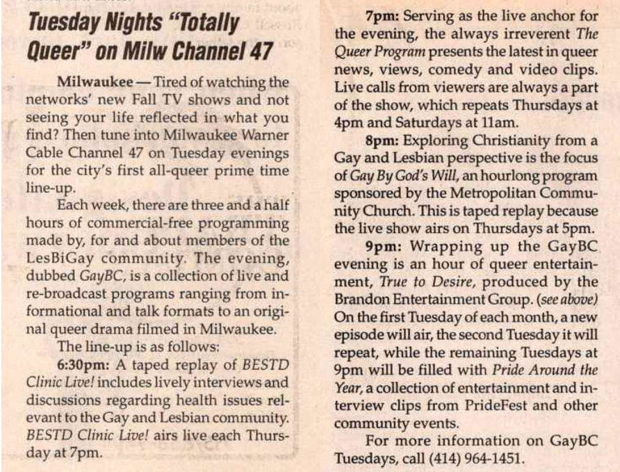 QUEST: Was this the Milwaukee's first LGBT cable program?