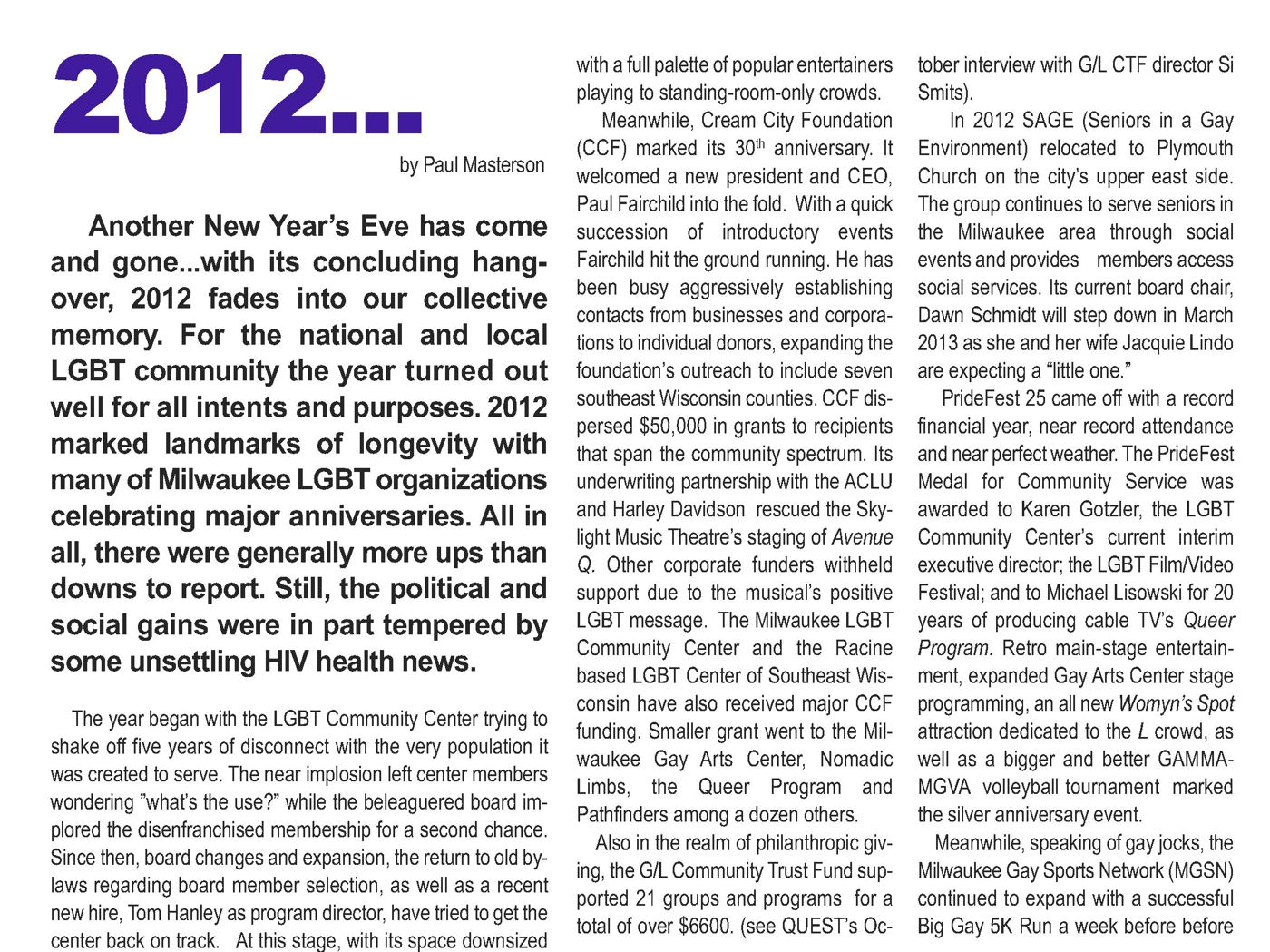 Article: 2012 wrap-up article mentions Queer Program twice (columns 2 & 3)