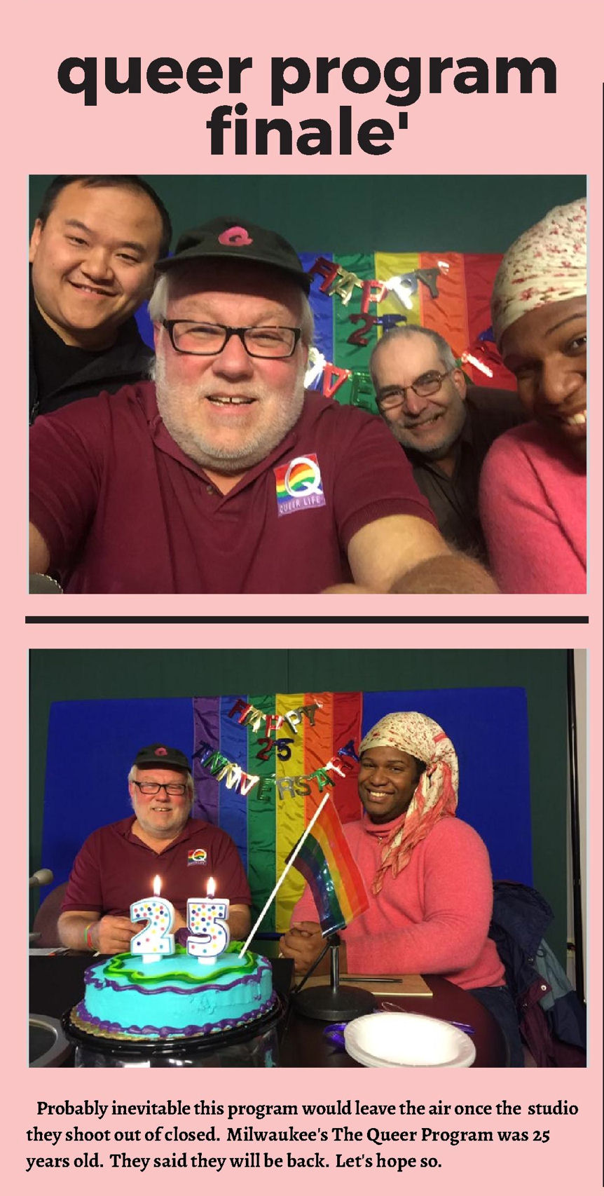 But the program's days were numbered. The Warner Cable Access facility was shut down in 2017, and with it, The Queer Program celebrated 25 years of broadcast with their final episode in November 2017.