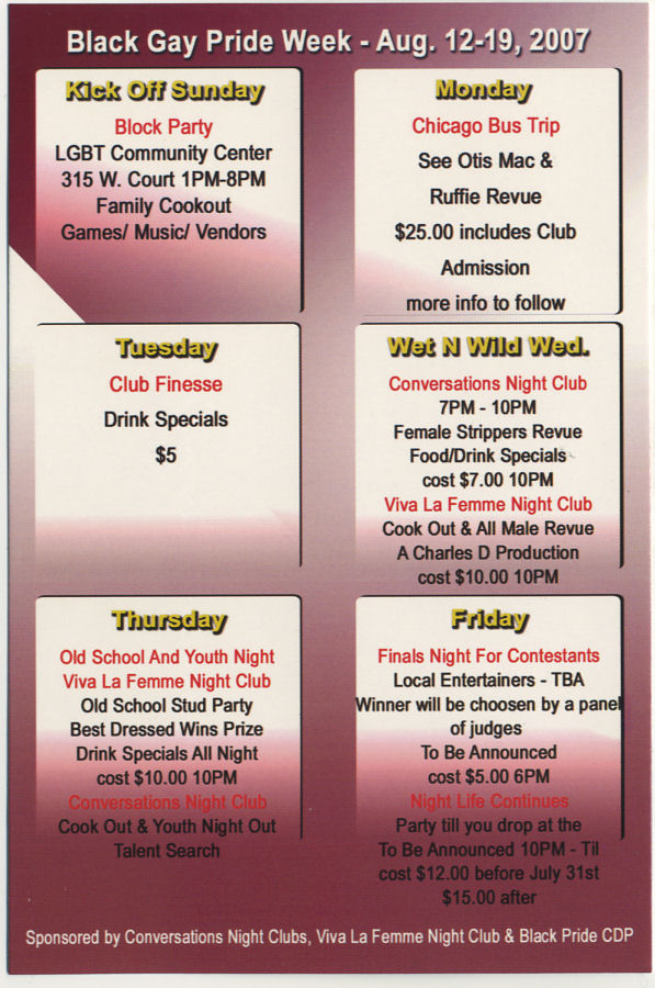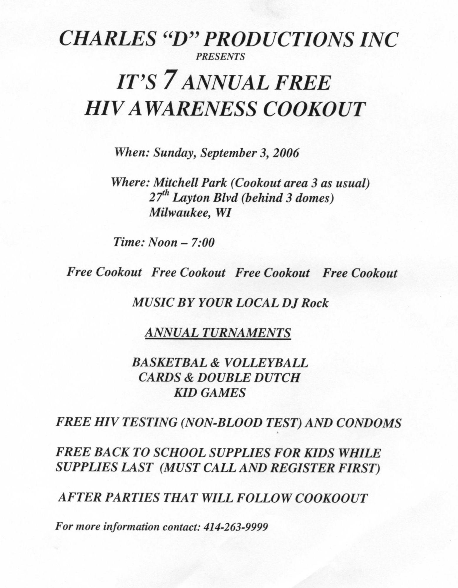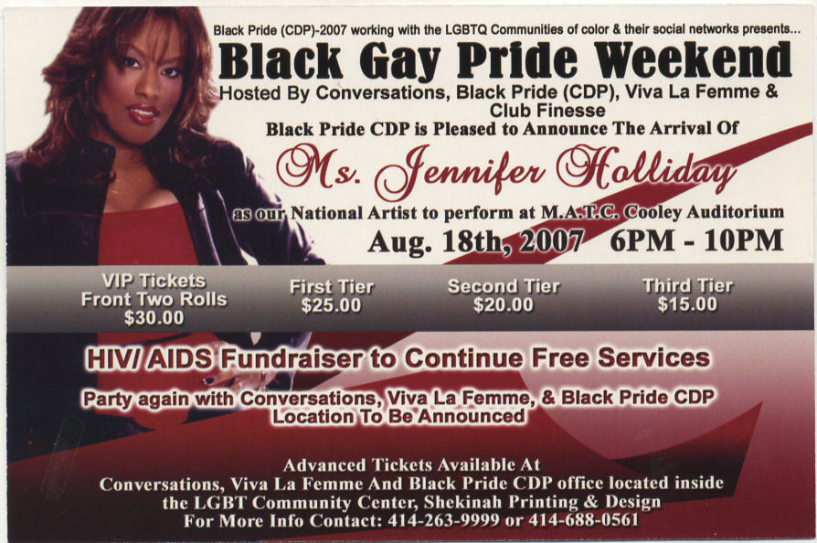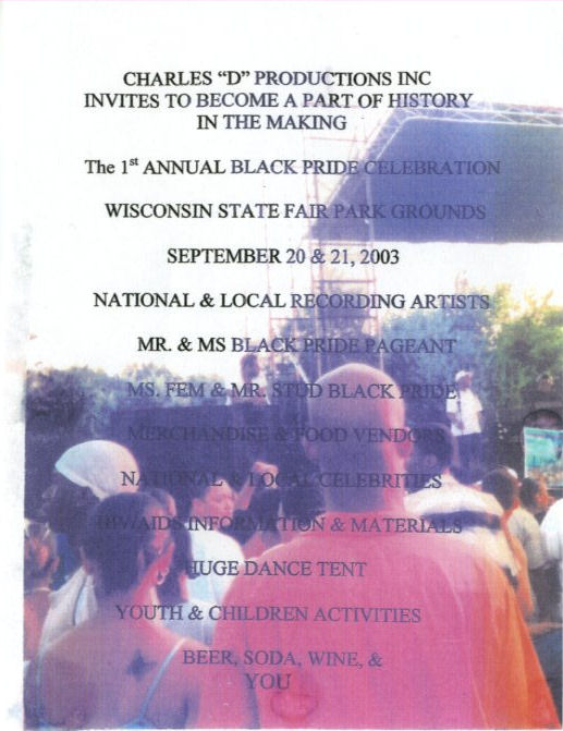 Charles Daniels Productions Inc. is committed to providing a safer haven where lesbian, gay, bisexual transgender, and questioning (LGBTQ) people of color are treated respectfully and allowed to express their social, political, and economic concerns. They strive to create a positive awareness of LGBTQ communities of color by establishing outreach to other communities, developing safer social outlets, community services, and forums to further HIV/AIDS testing, prevention materials and information. Founded approximately 1993 by Charles Daniels, in 2007 the organization had one paid staff person. It has been quietly active in its target community. In 2006 they were a recipient of the Joseph R. Pabst LGBT Infrastructure Fund's Lesbian and Bisexual Women 25/25 Venture, and in 2007 requested a modest grant from the Cream City Foundation for a media campaign for HIV testing and condom use within the African American community. Charles D. Productions is also producing Milwaukee's annual Black Pride event. More information on that is available at the Milwaukee Black Pride website. |