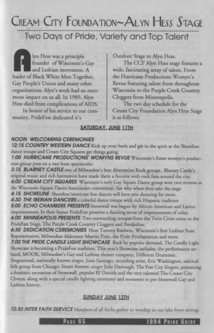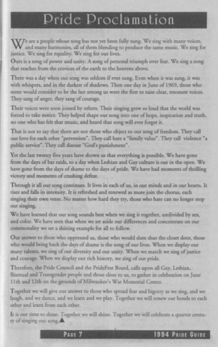 Thanks to PrideFest Inc. for permission to reproduce select items.