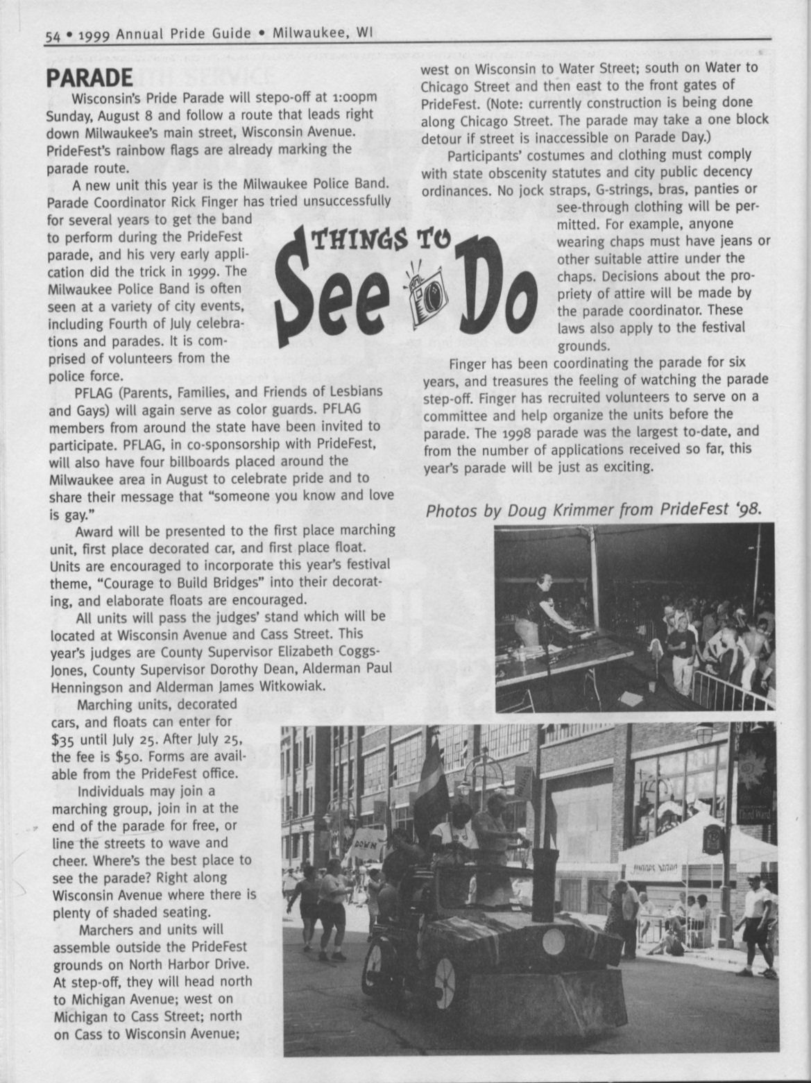 (actual size: 8"w x 10.5"h) (80 pages, newsprint) Click here to view pages from the 1999 Pride Guide |