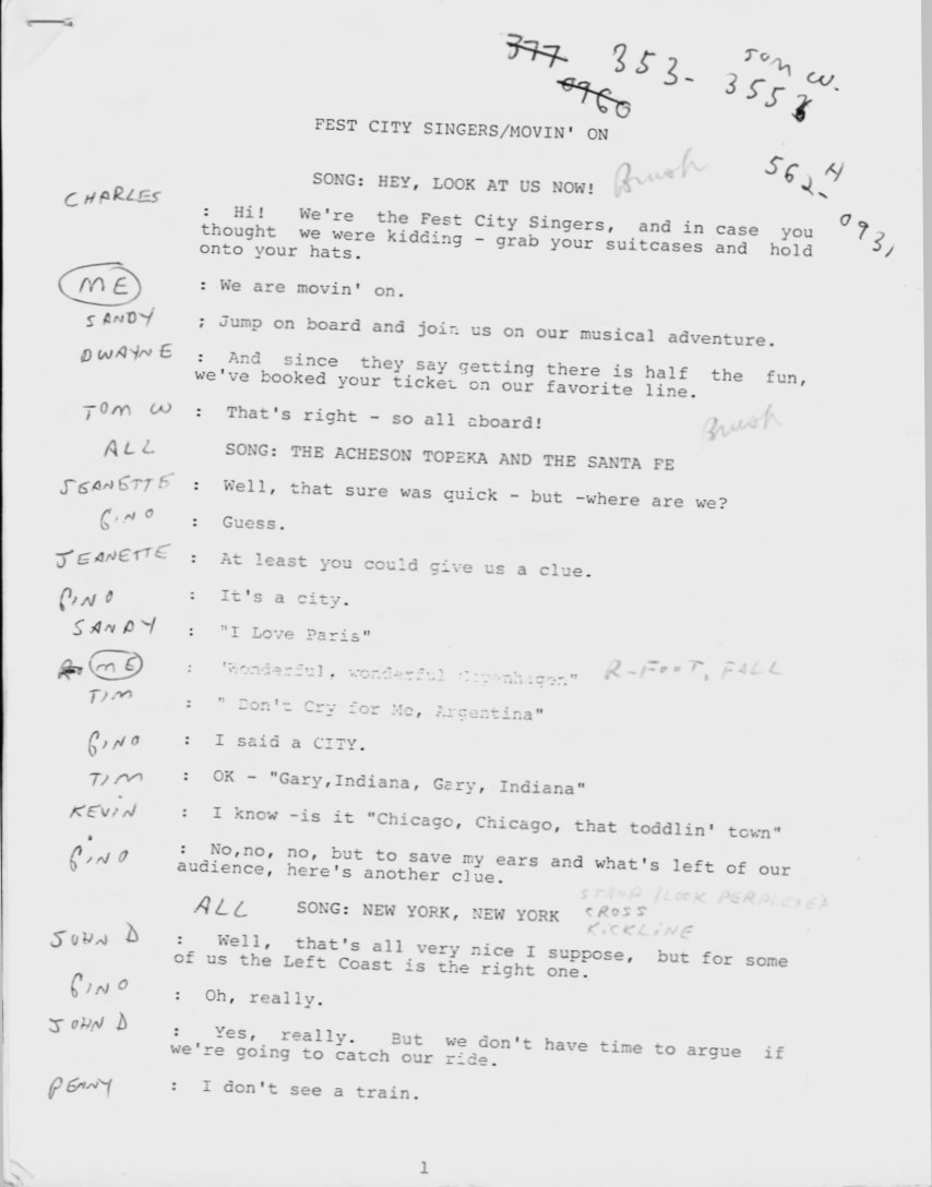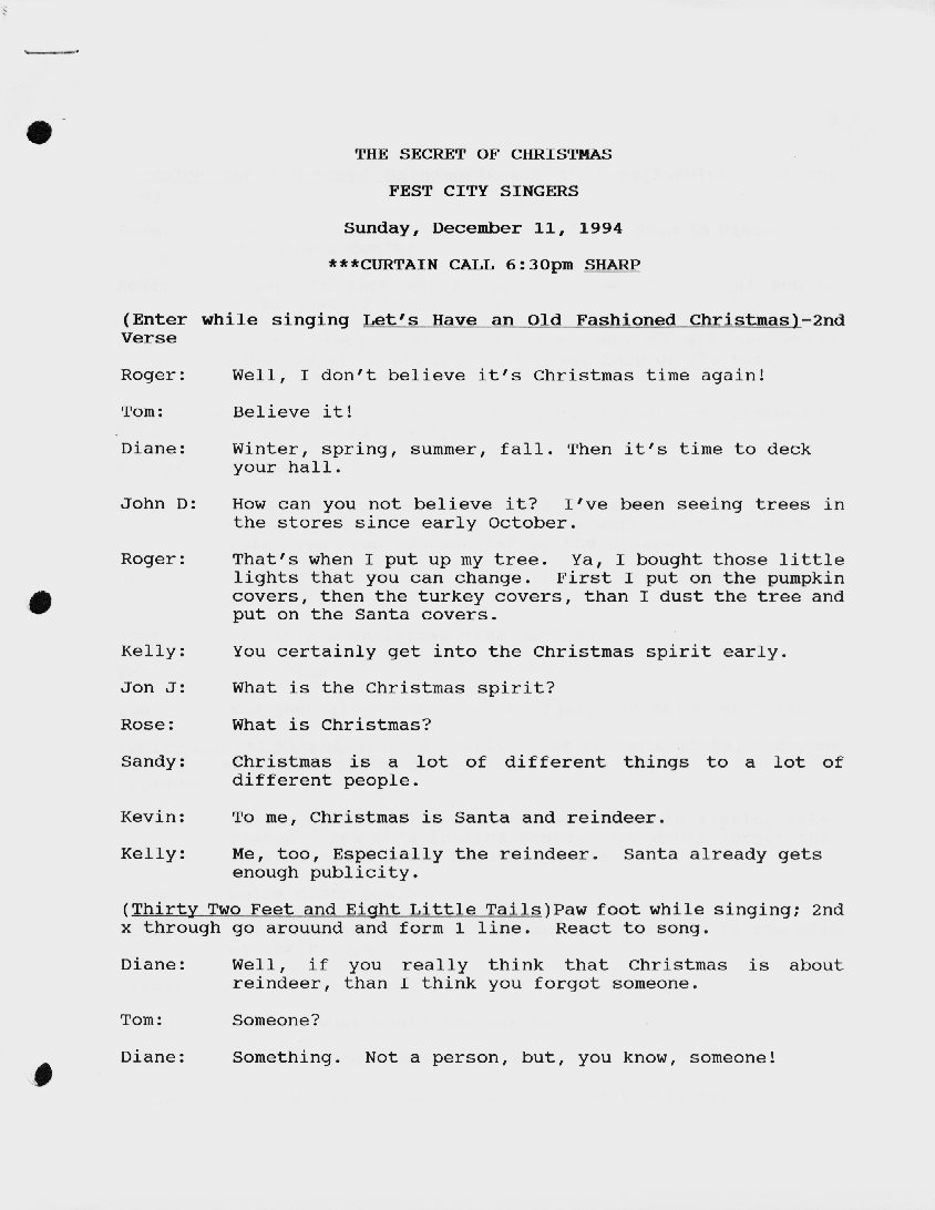 BONUS: Behind the Scenes: a page from the original script of December 1994 "Secret Christmas" concert