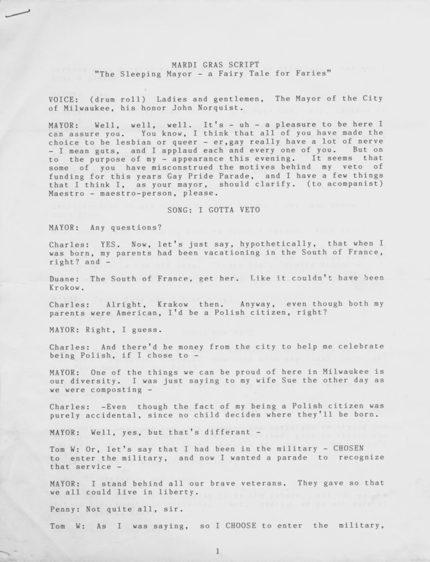 BONUS: Behind the Scenes: a page from the original script of October 1989 "Faerie Tales" concert
